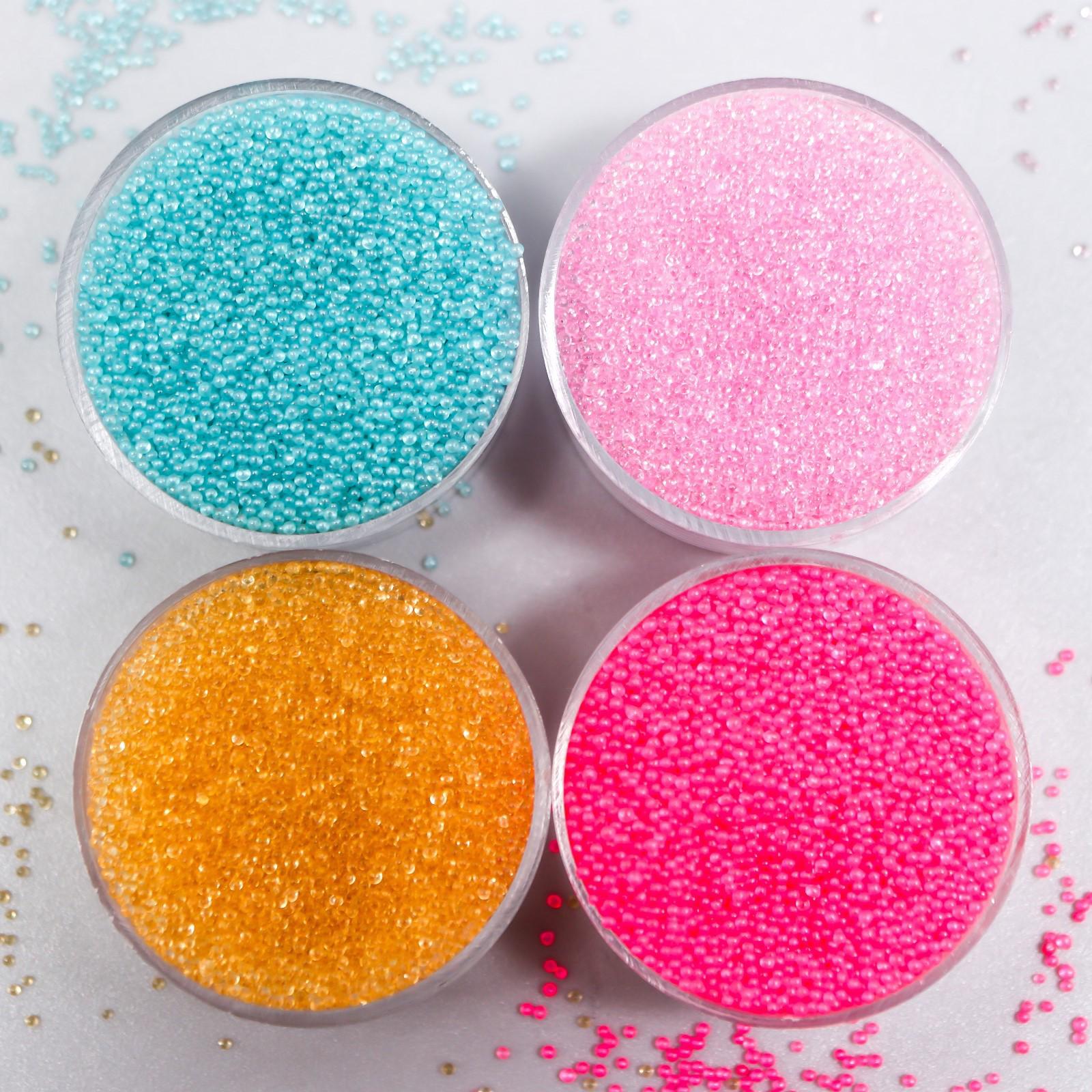 Микробисер — это очень маленькие бусинки без отверстия размером 1 мм и меньше (как речной песок). Используется для декора открыток, вышивок, игрушек, сувениров, свечей, одежды, цветов и т.д. Иными словами, микробисер применяется в скрапбукинге, кардмейкинге, декупаже, штампинге, фелтинге и других видах творчества.