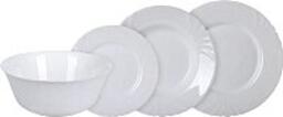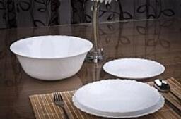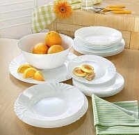 • В наборе тарелка столовая мелкая, тарелка закусочная (десертная), тарелка столовая глубокая, салатник