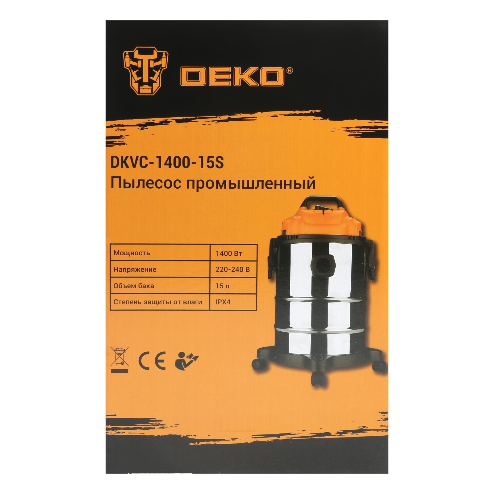 Строительный пылесос DEKO DKVC-1400-15S, 1400 Вт, корпус из нержавеющей стали, 15 л