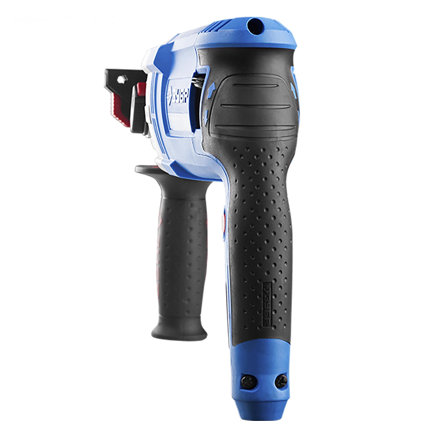 Перфоратор предназначен для сверления отверстий в металле и дереве, а также для долбёжных работ. Быстрозажимной патрон позволяет легко заменить оснастку. Функция реверса помогает высунуть застрявший во время эксплуатации бур, а дополнительная рукоятка обеспечит надёжный хват инструмента.