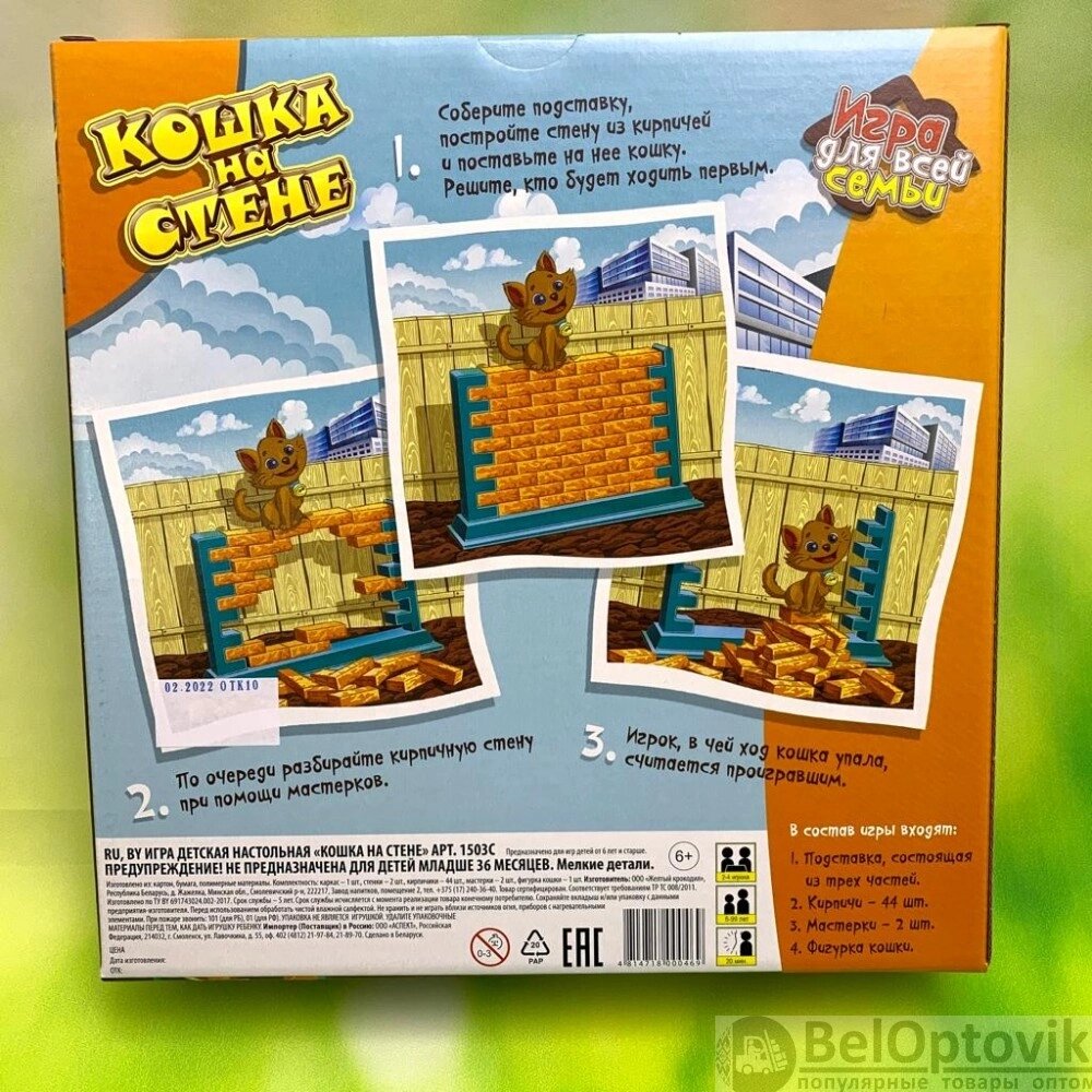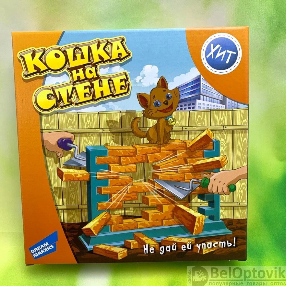 Легендарная логическая настольная игра Кошка на стене (шпателем выдвигать кирпичики и не уронить кошку)