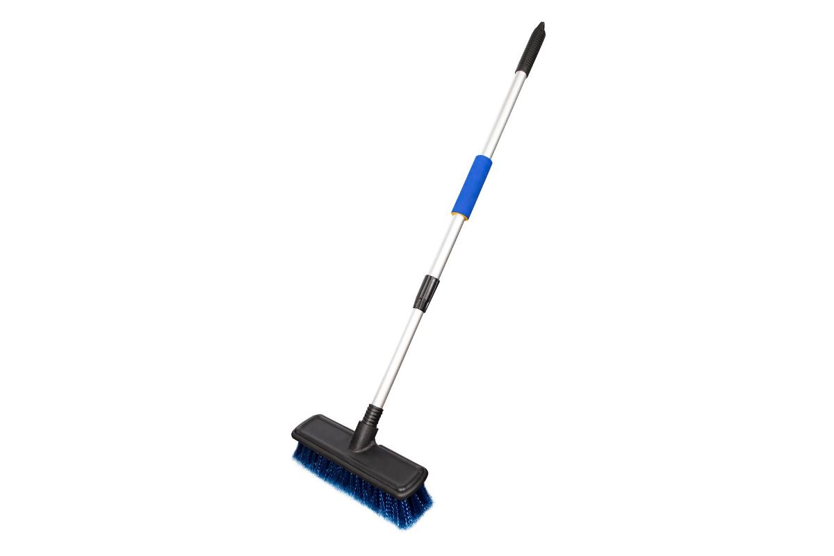 Щетка для мытья имеет телескопическую ручку с максимальной длиной 130 см (в сложенном виде мин длина 73 см), а также щетку для удаления пыли и грязи. Щетка имеет пластмассовое основание шириной 20 см и мягкий распушенный ворс для деликатной уборки. Рабочая поверхность щетки легко открепляется.