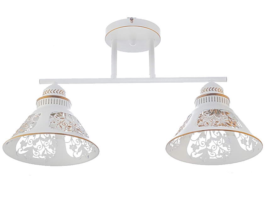 Светильник предназначен для освещения жилых помещений. Основание - металл. Плафон-металл. Цвет белый/золотая патина. Тип патрона -Е27.