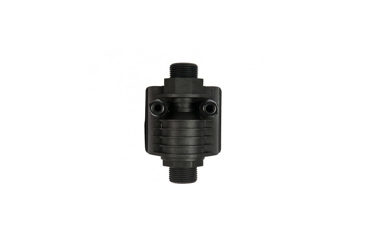 Блок управления автоматически включает насос при скорости потока более 2 л/мин или при падении давления ниже Рмин, и, с тридцатисекундной задержкой, отключает насос при скорости потока менее 2 л/мин.