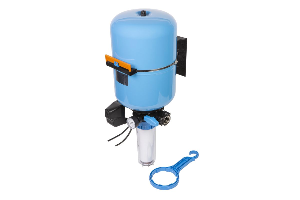 Комплексное решение автоматики на баке, для автоматического управления включением и выключением насоса с поддержанием заданного давления в системе водоснабжения и предварительной фильтрации воды.
