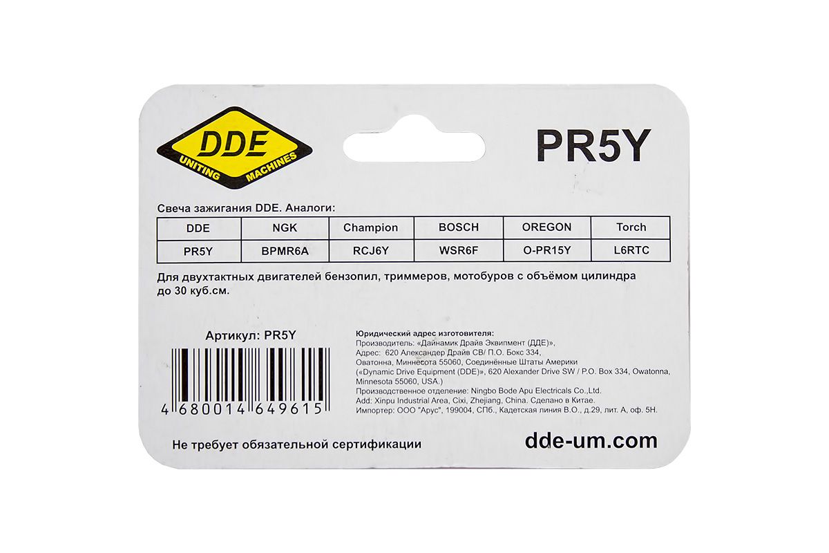 Свеча зажигания DDE PR5Y для бензопил триммеров мотобуров Свеча зажигания DDE - PR5Y (Champion RCJ6Y, Bosch WSR5F, NGK BPMR8A) бензопилы, триммеры, мотобуры
