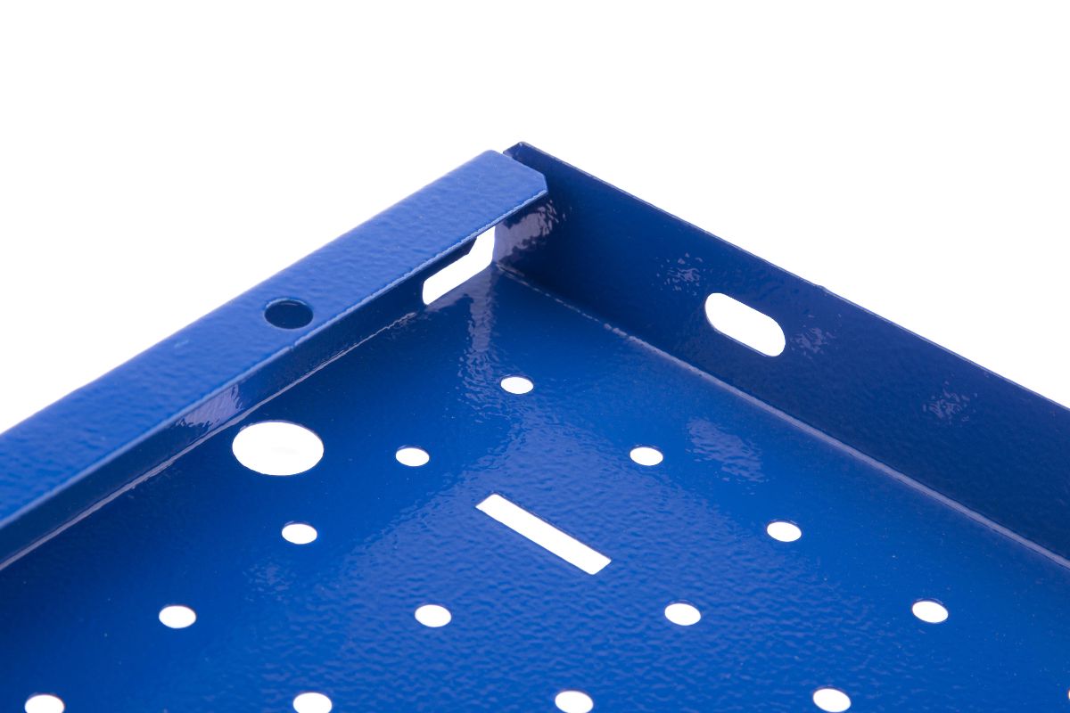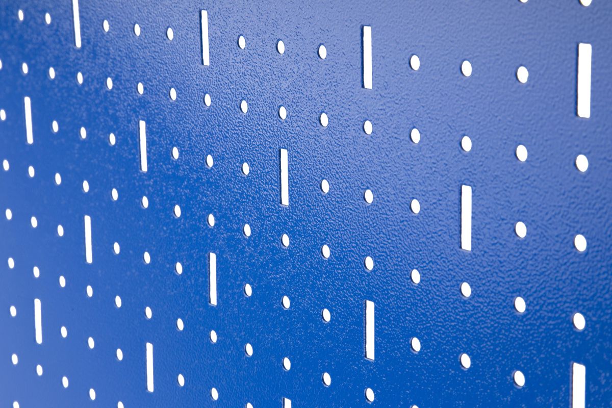 Панель перфорированная предназначена для организации рабочего места в мастерских, гаражах, автосервисах, производственных цехах. На них размещаются держатели для различного инструмента, полки и кармашки. Цвет – синий RAL 5005 Размеры (ШхВхГ) 2000х500х40 мм.