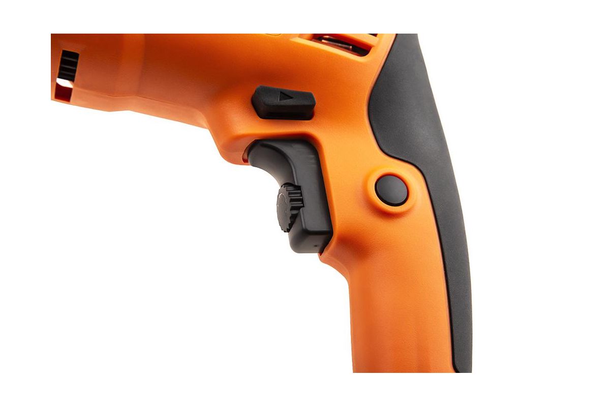- Яркий оранжевый цвет позволяет быстро найти дрель в траве около дома и среди других инструментов.