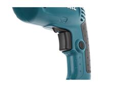 Дрель Makita 6413 оборудована износостойким двигателем с мощностью 450 ватт. Данная дрель имеет регулируемый скоростной режим с максимальной частотой вращения 3000 оборотов за минуту. Регулировка скорости вращения насадки осуществляется с помощью нажатия на курковый переключатель. Эта дрель имеет функцию реверса и оборудована удобным переключателем для изменения направления вращения. Быстрозажимной патрон дрели Makita 6413 устраняет необходимость использования специального инструмента для установки и замены рабочих насадок, а эргономичная прорезиненная рукоятка обеспечивает более комфортную работу, и в то же время снижает утомляемость оператора. Кроме того, конструкция с шариковыми подшипниками и линейный дизайн этой дрели гарантируют отличную балансировку и позволяют сверлить отверстия более точно.