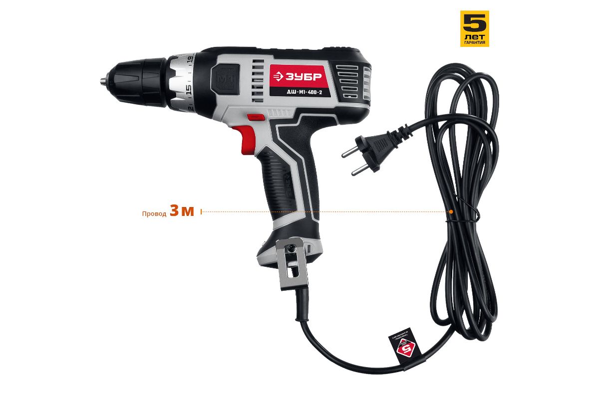 Дрель-шуруповерт ЗУБР ДШ-М1-400-2 сетевая, 400 Вт, 0-450/0-1800 об/мин