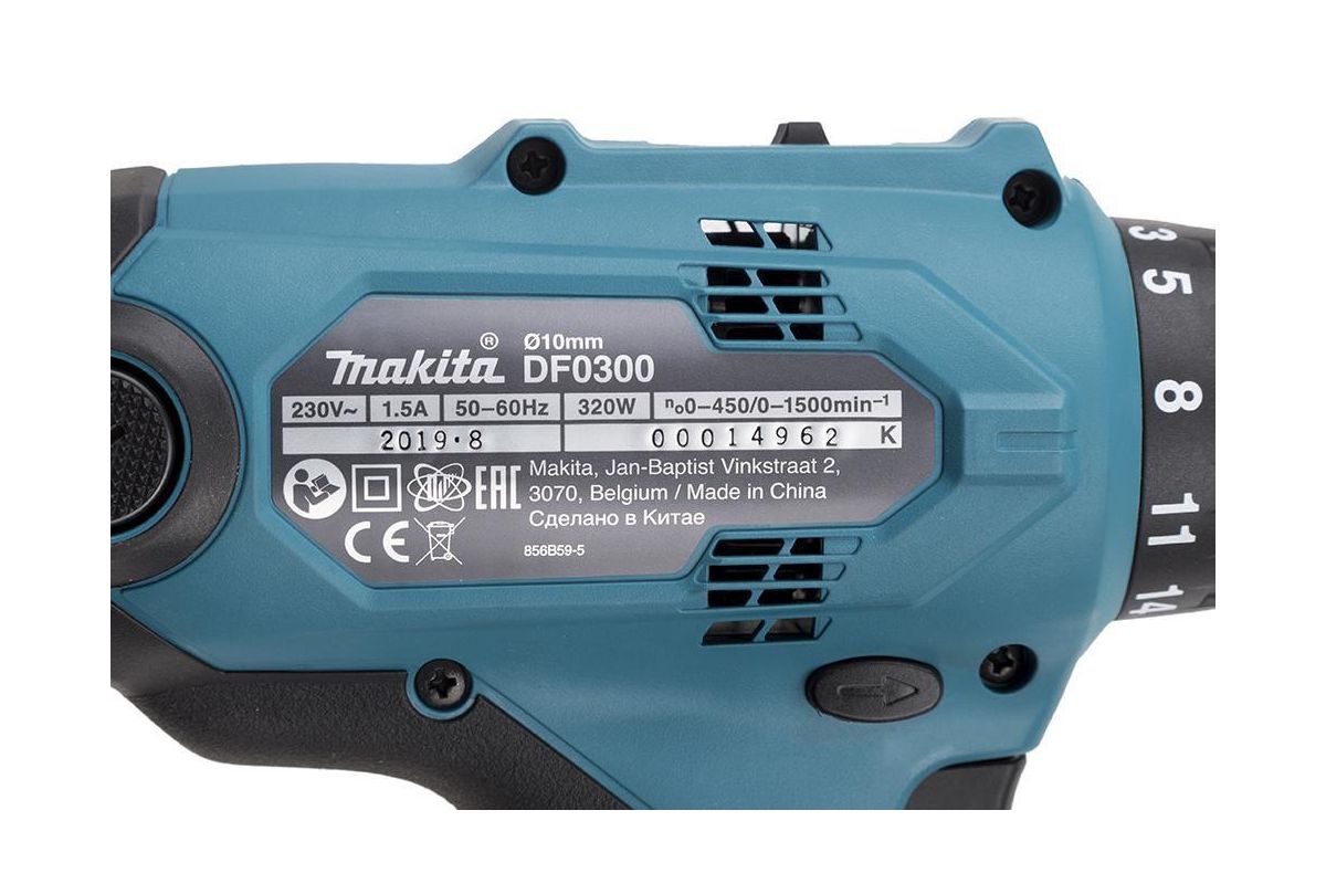 - Обрезиненная рукоять для надежного захвата Makita DF0300;