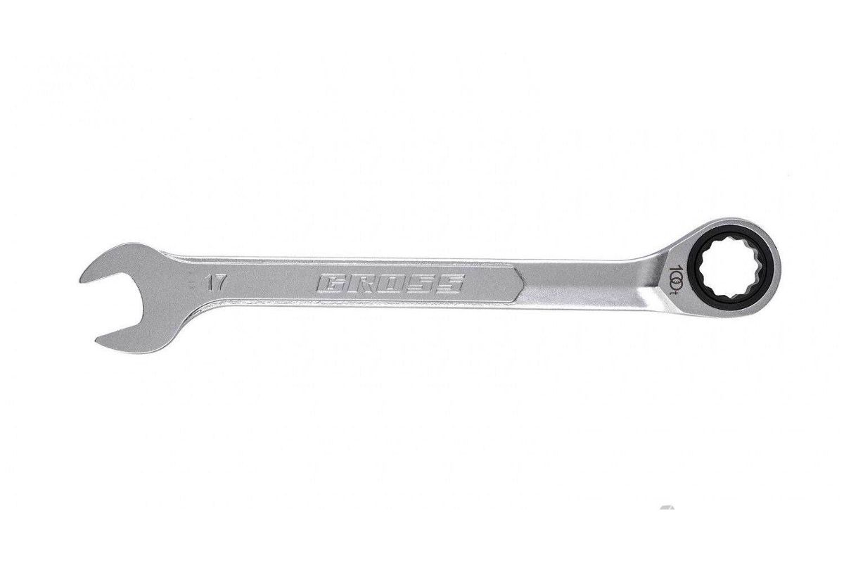 Ключ комбинированный трещоточный 17 мм GROSS 14855 применяется для обслуживания крепежа и резьбовых соединений.