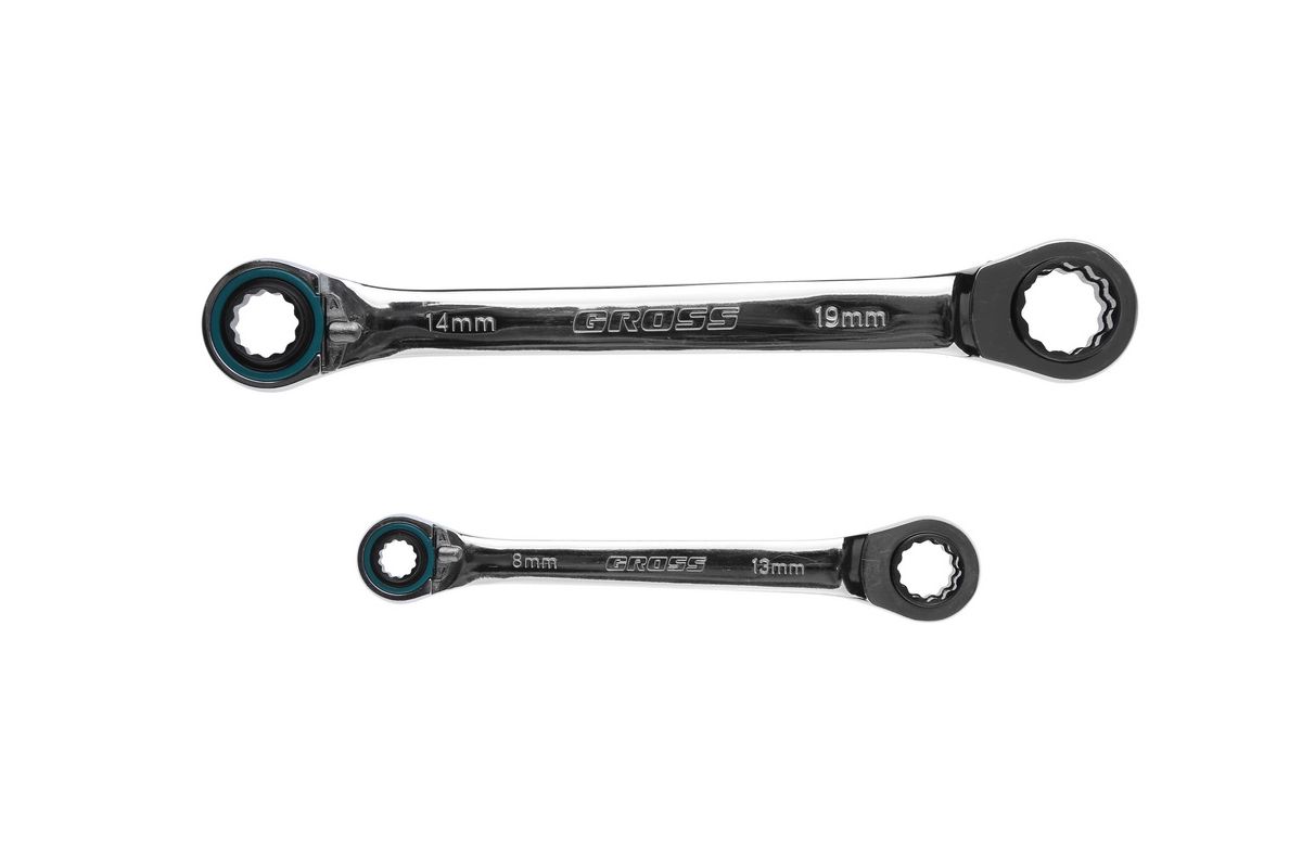 Набор ключей накидных GROSS 14893 с трещоткой, 8 - 19 мм, 2 шт., многоразмерные, реверсивные, CrV