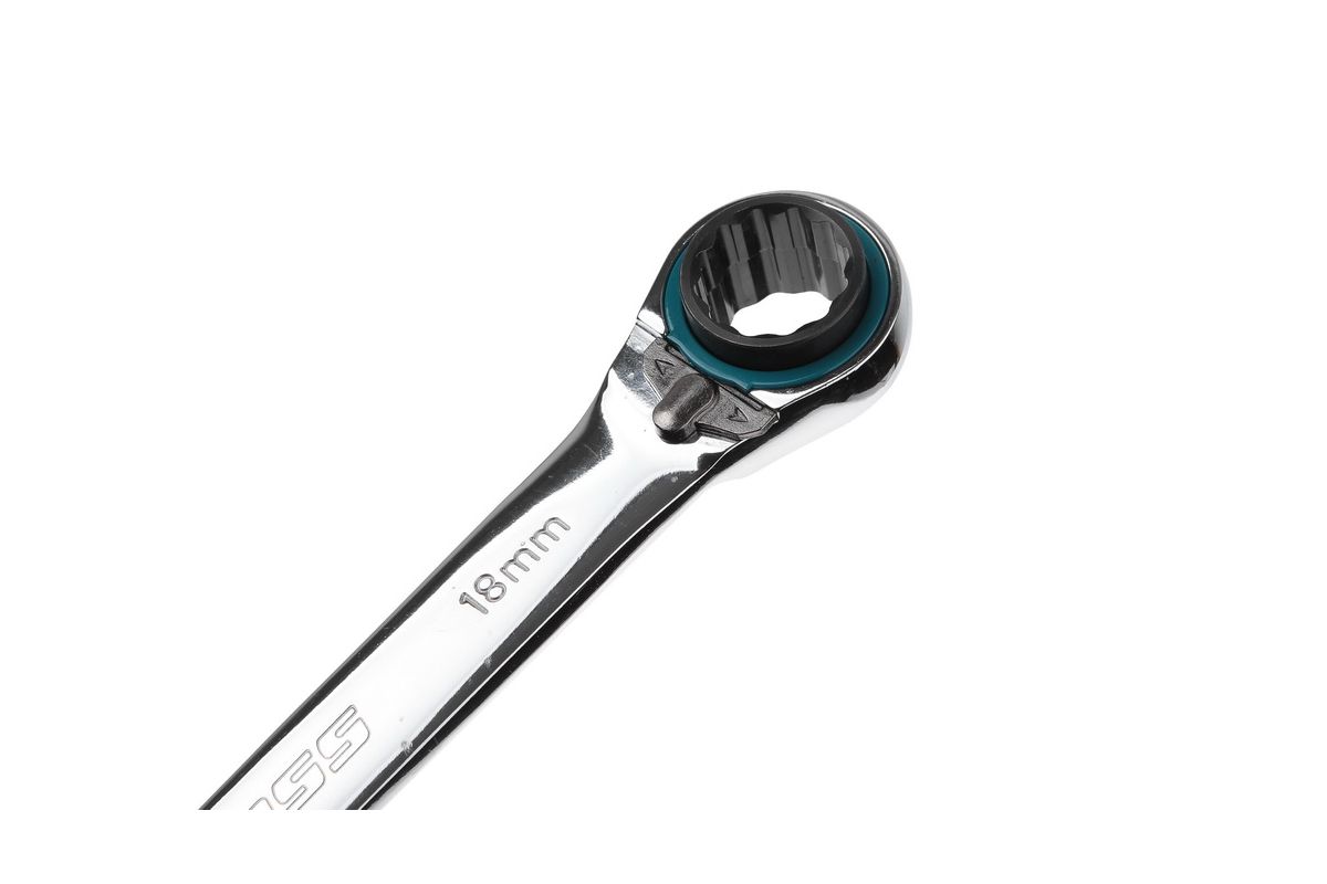 Ключи изготовлены из хромованадиевой стали. Имеют хромоникелевое антикоррозионное покрытие. Твердость материала храпового механизма 58 HRс. Ключ имеет два кольцевых зева различных размеров. Профиль накидной части ключа имеет 12 граней, что увеличивает площадь соприкосновения рабочих поверхностей и снижает риск деформации граней крепежа. В кольцевой профиль ключа установлен специальный реверсивный храповый механизм (трещотка) с 72 зубцами, который обеспечивает легкий ход инструмента, быстрый и удобный монтаж резьбовых соединений. Минимальный угол поворота ключа 5°. Предназначены для эффективного откручивания и закручивания болтовых соединений.