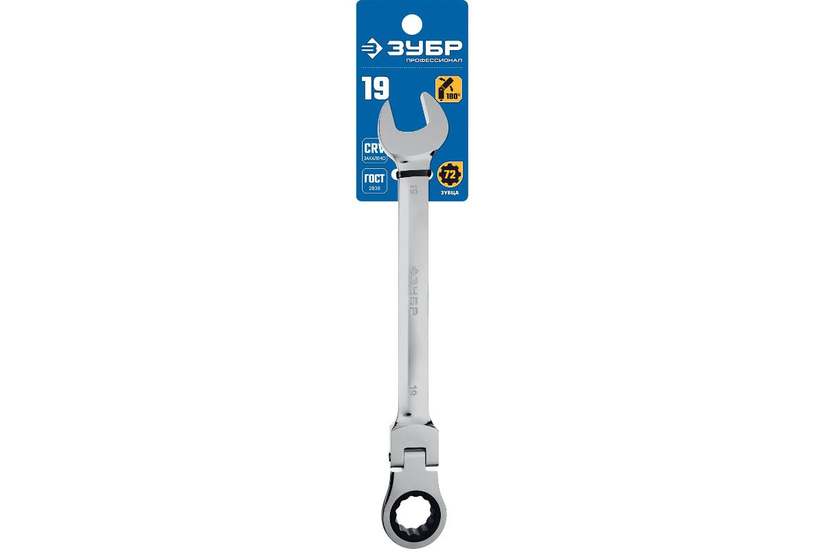 Комбинированный гаечный ключ ЗУБР 27101-19 трещоточный шарнирный 19 мм