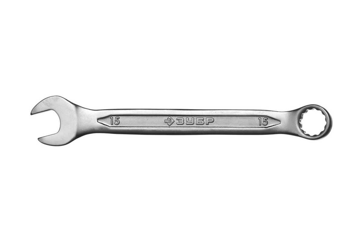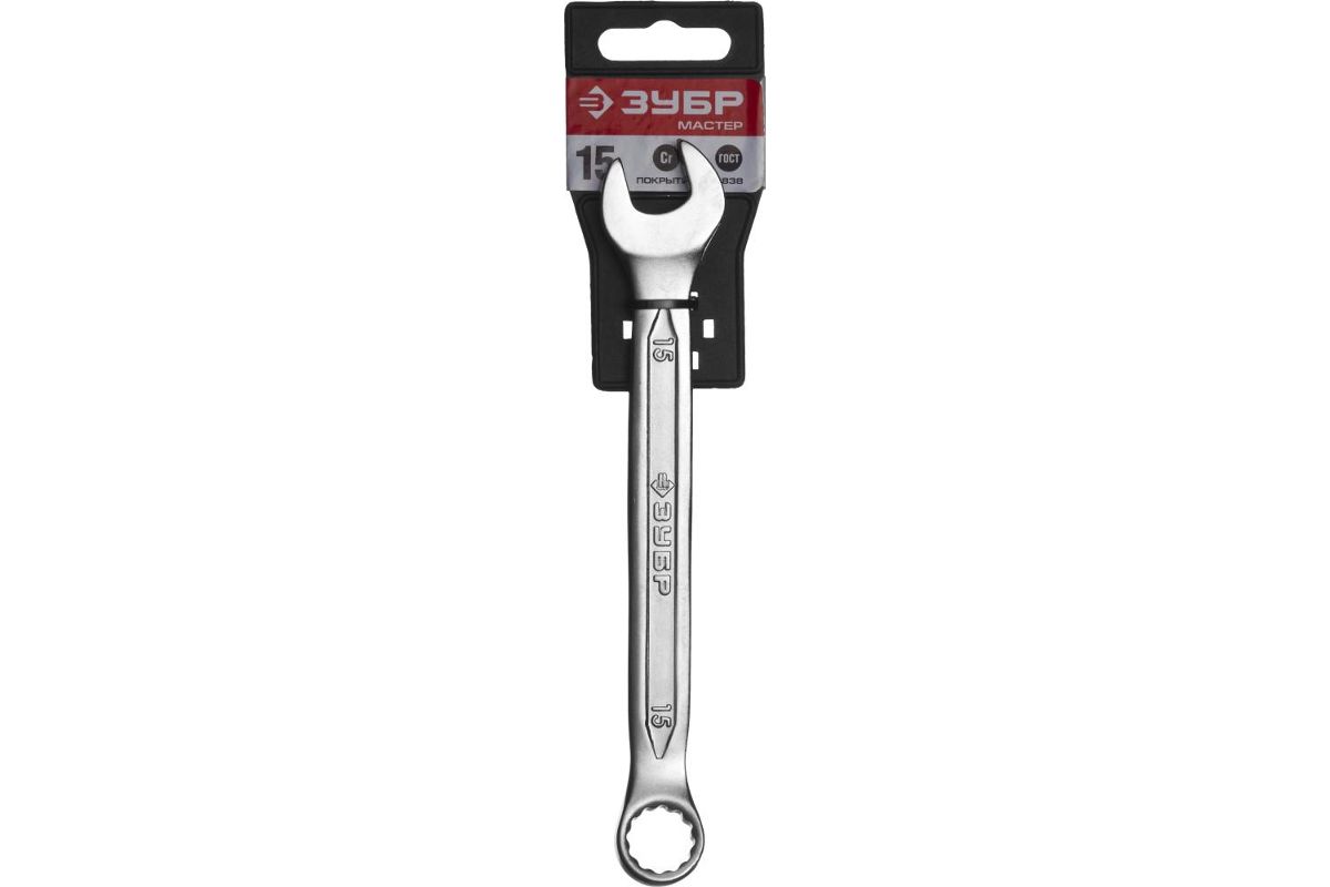 Ключ ЗУБР 27087-15 МАСТЕР гаечный комбинированный, Cr-V сталь, хромированный, 15мм Cr-V сталь хромированное покрытие