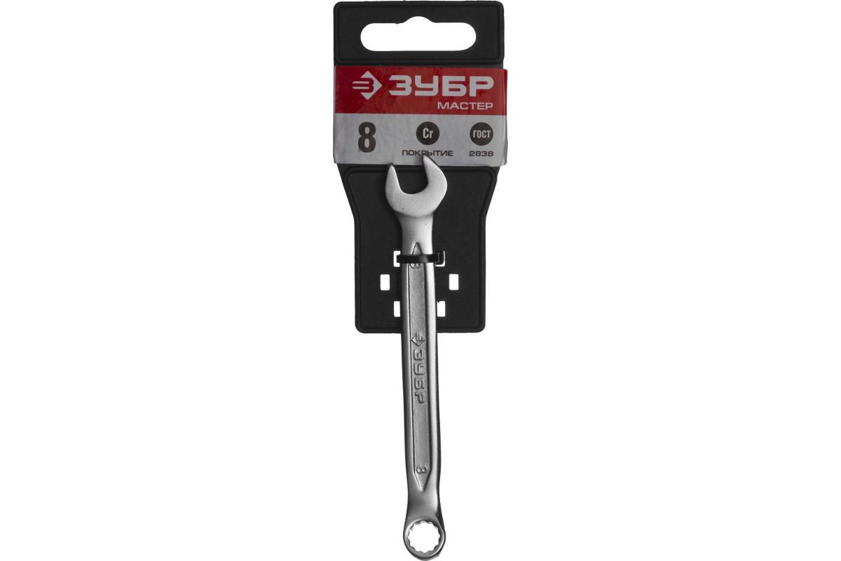 Ключ ЗУБР 27087-08 МАСТЕР гаечный комбинированный, Cr-V сталь, хромированный, 8мм Cr-V сталь хромированное покрытие