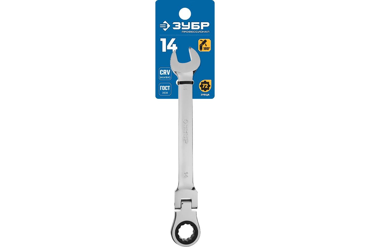Комбинированный гаечный ключ ЗУБР 27101-14 трещоточный шарнирный 14 мм