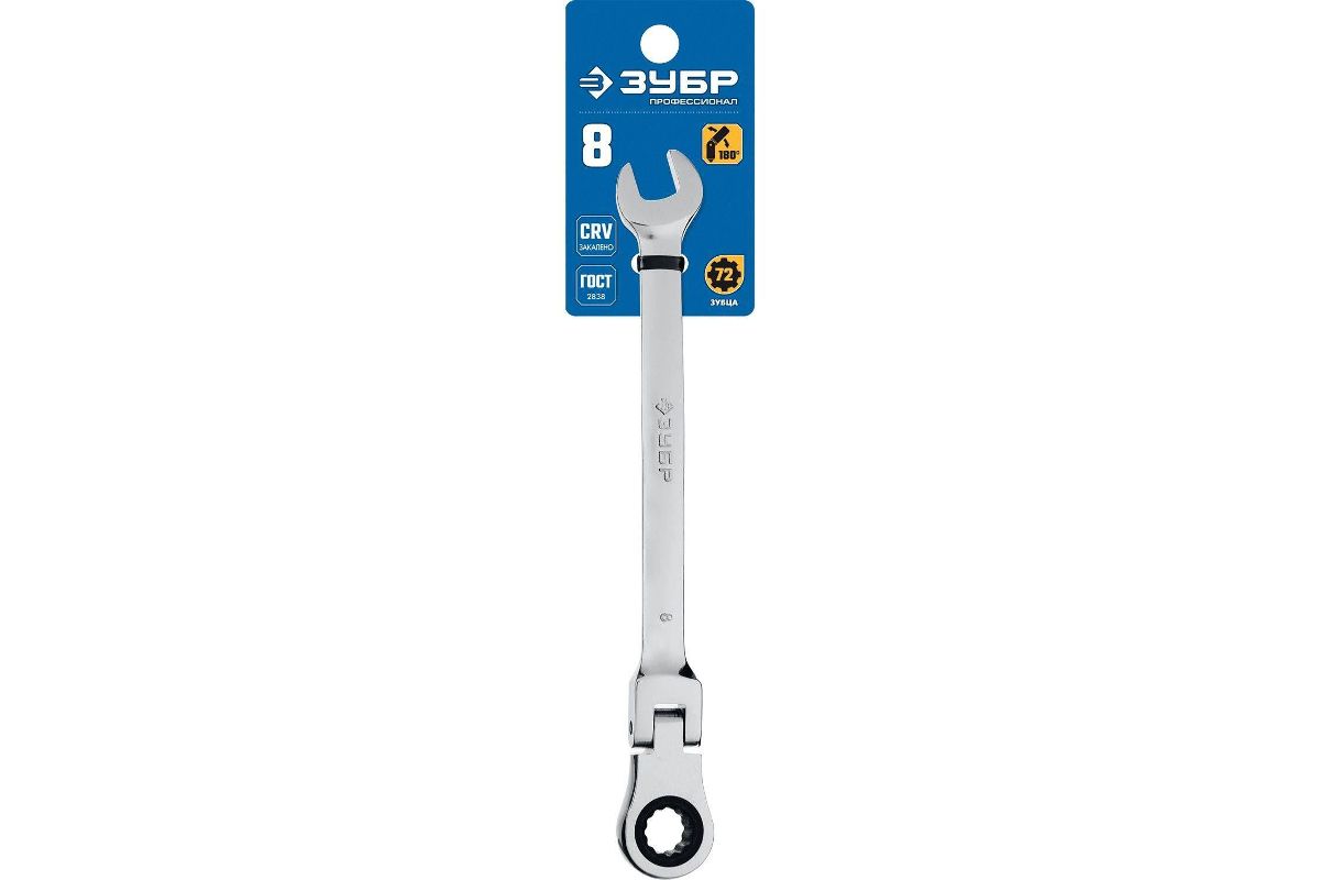 Комбинированный гаечный ключ ЗУБР 27101-08 трещоточный шарнирный 8 мм