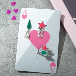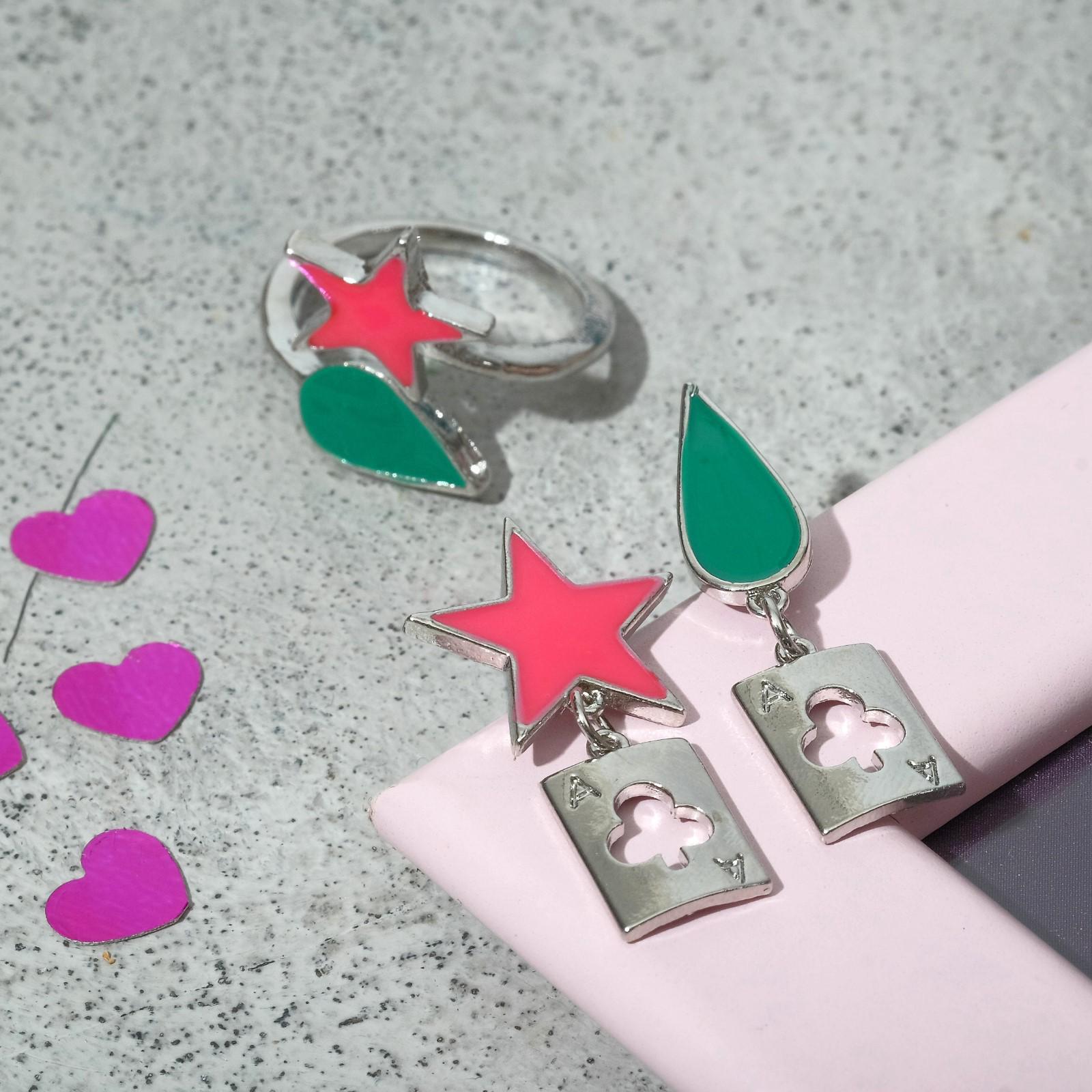 Набор: серьги, кольцо "Аниме" звезда и капля, цвет зелёно-розовый в серебре