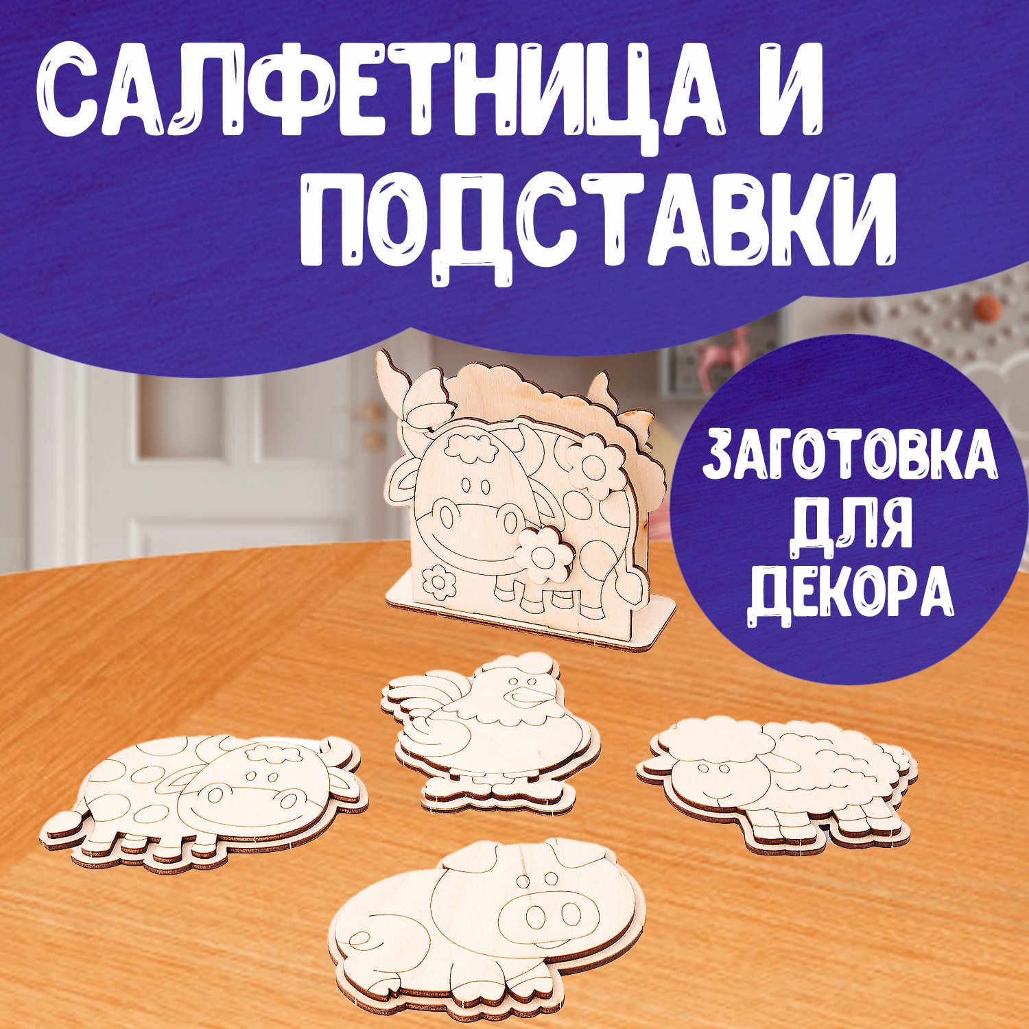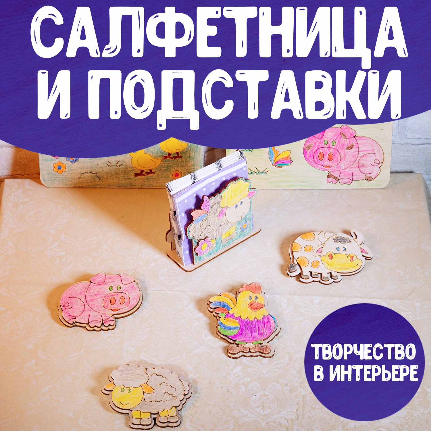Набор для творчества LORI Основы для выжигания и росписи салфетницы и 4 подставок под кружки Утро в деревне Мпф-161