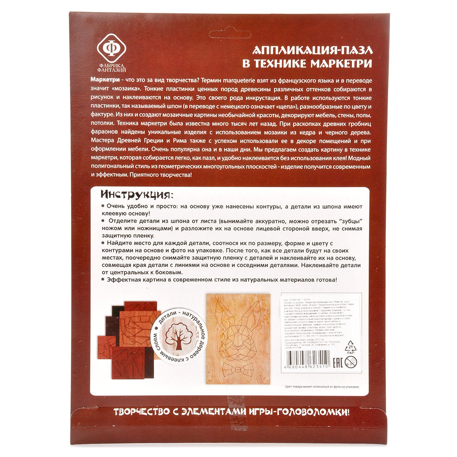 Набор для творчества Фабрика Фантазий Маркетри аппликация-пазл Мистер Заяц 125554