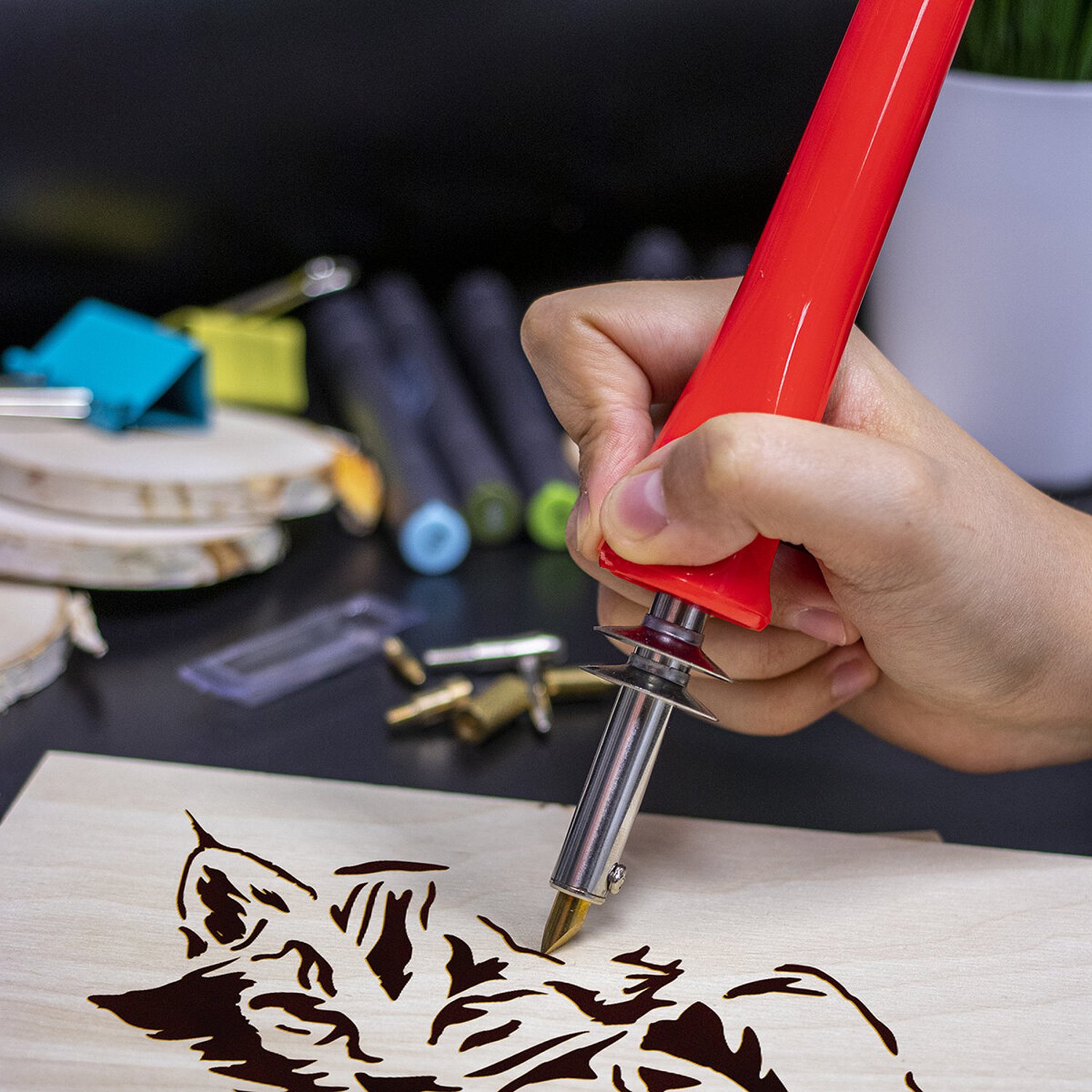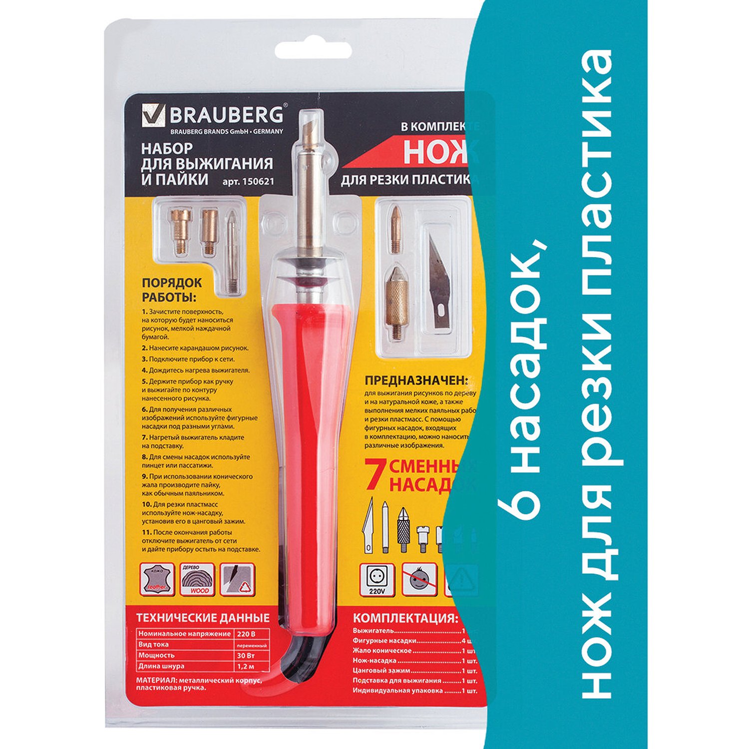 Набор для выжигания и пайки Brauberg 6 насадок нож для резки пластика красный 150621