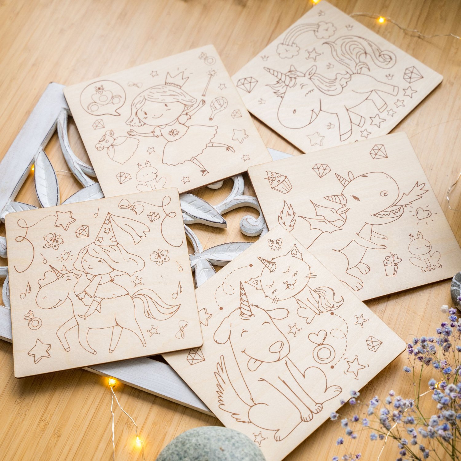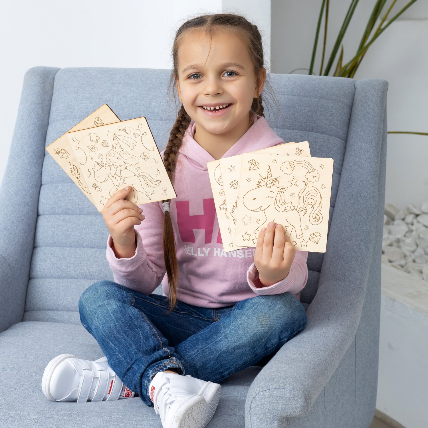 Набор досок для выжигания Раскрась и подари Единороги 15х15 см 5 шт. DR-1062