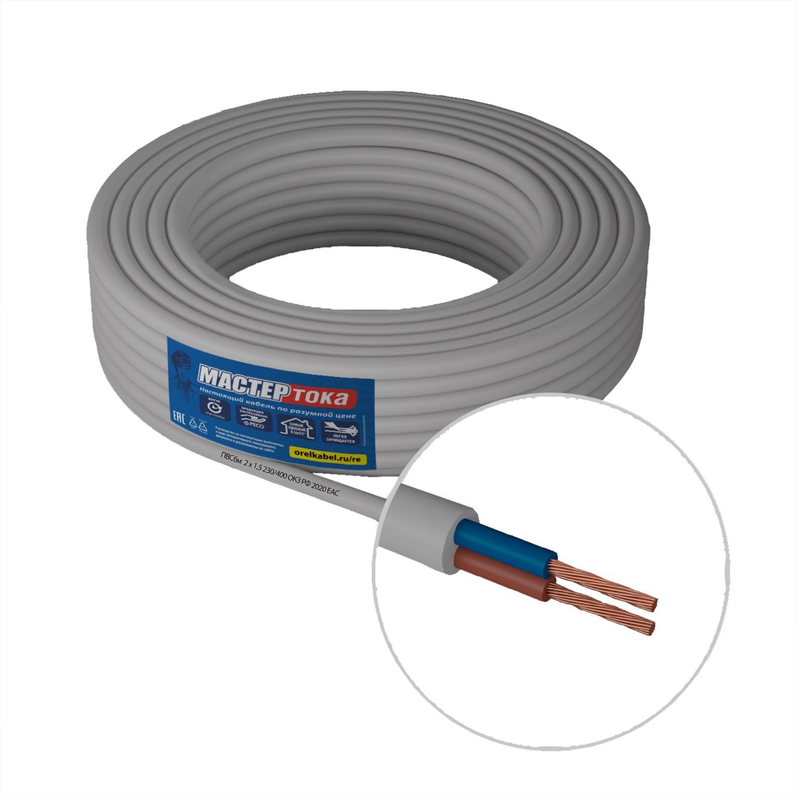 Провод "Мастер Тока" ПВСбм, сечение 2х1.5 мм2, 100 м, белый