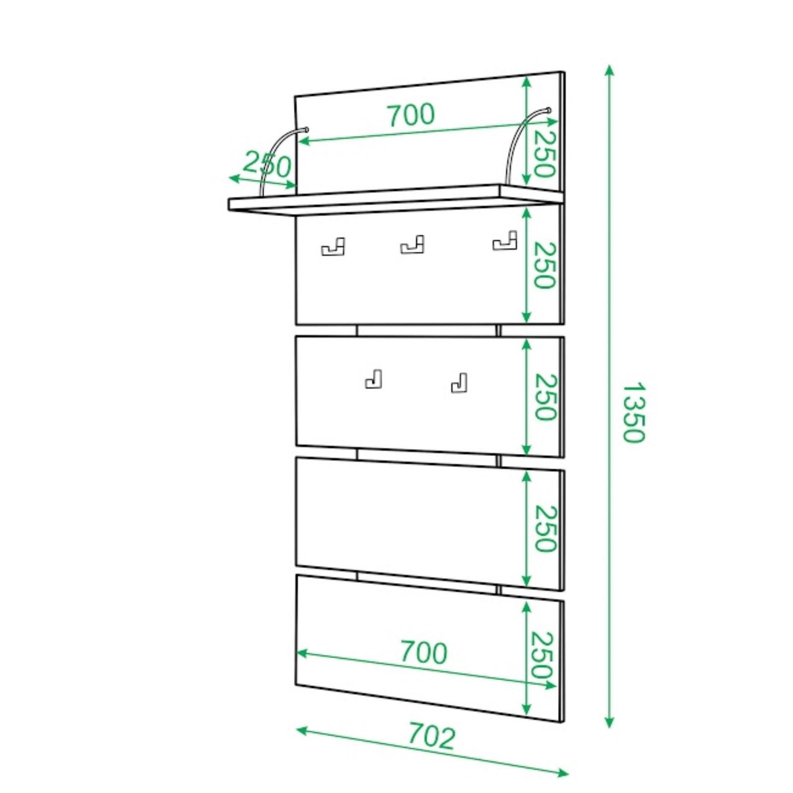 Вешалка настенная СТ-50, 702 × 265 × 1350 мм, цвет нельсон