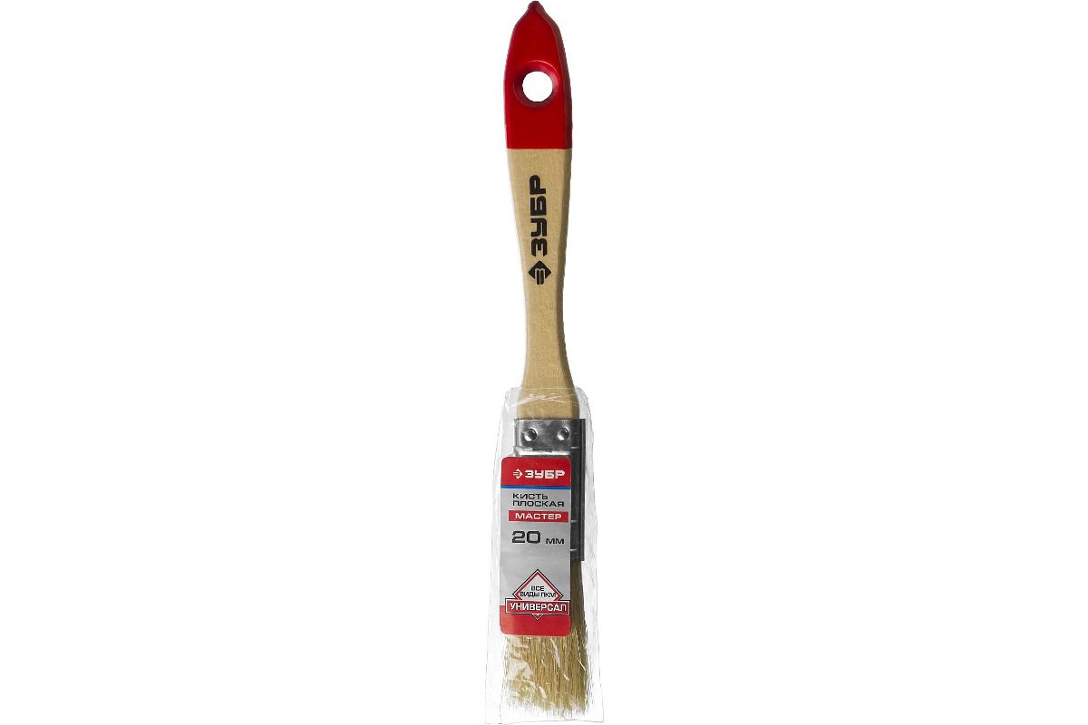 Кисть плоская ЗУБР ''УНИВЕРСАЛ-МАСТЕР'' 4-01003-020 нат.щетина, деревянная ручка, 20мм