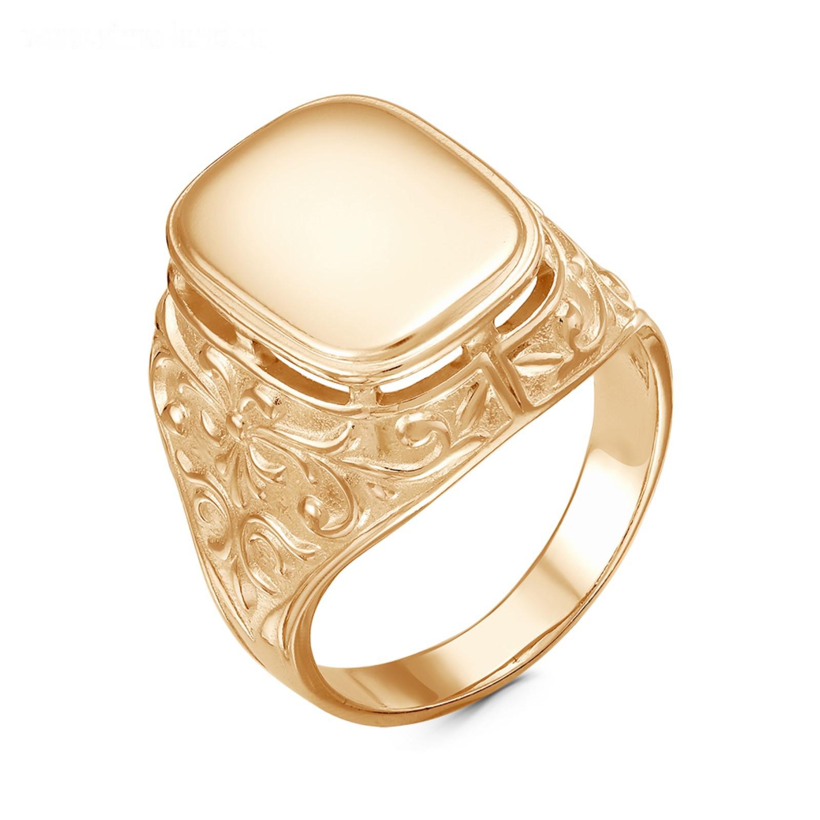 Кольцо мужское "Перстень" с вензелем, розовое золочение, 20 размер