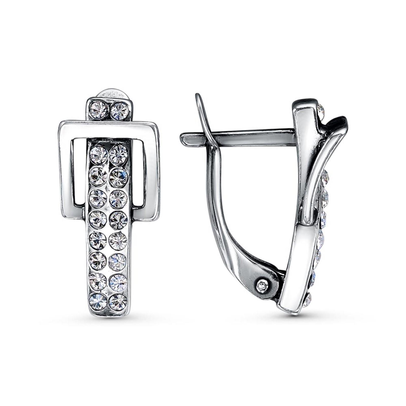 Серьги "Ремешок" со стразами, посеребрение с оксидированием, цвет белый