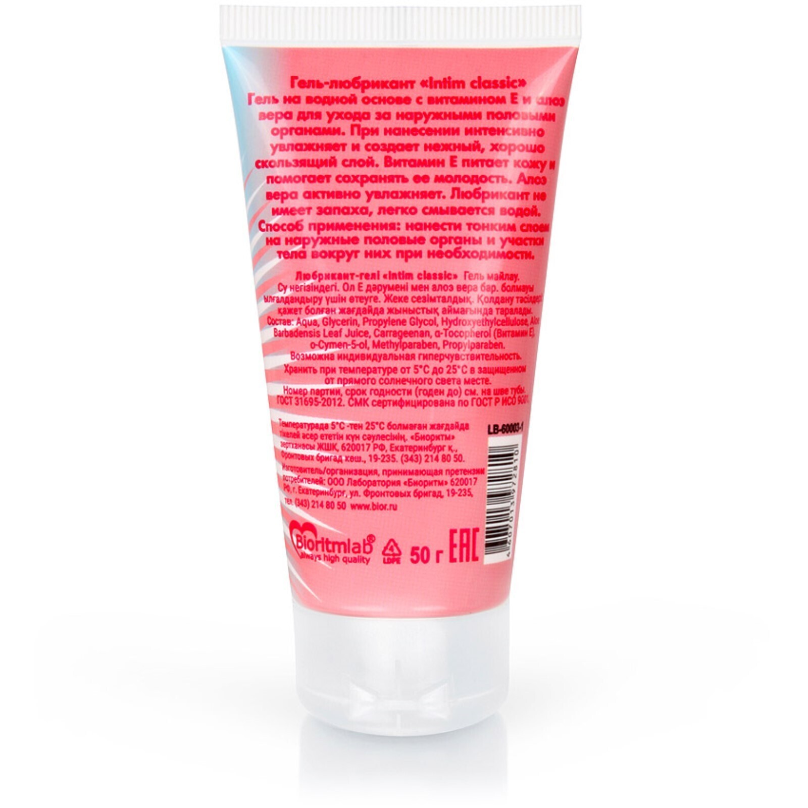 Гель-смазка INTIM in the city Classic, на водной основе, Алое Вера, витамин Е, 50 мл