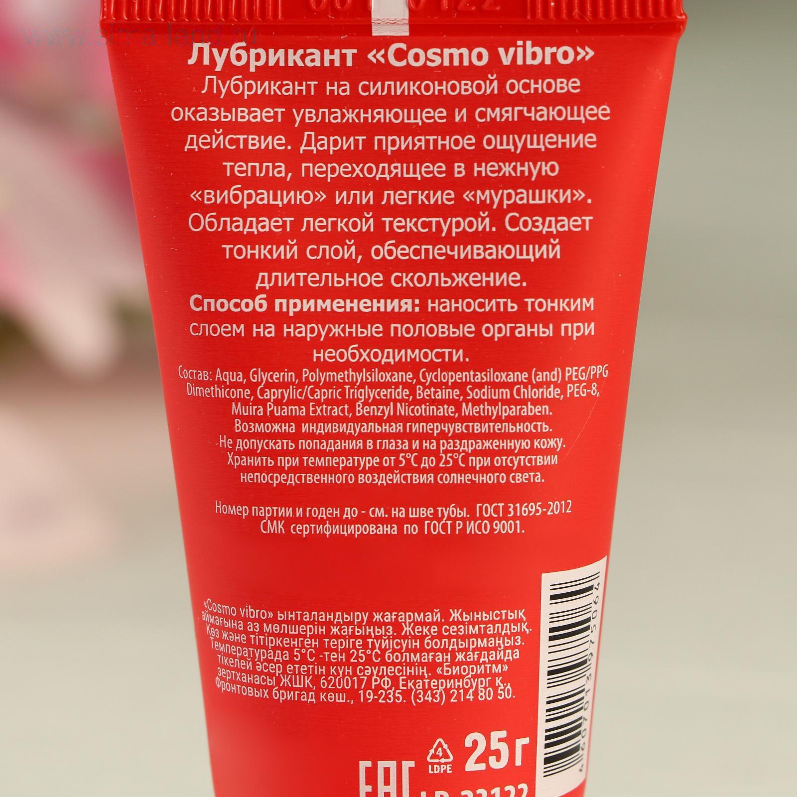 Лубрикант на силиконовой основе «Cosmo vibro».Это больше, чем просто лубрикант! Активный компонент в составе - экстракт муира-пуамы - оказывает необычное стимулирующее действие, вызывая нежную «вибрацию» и возбуждающие «мурашки».