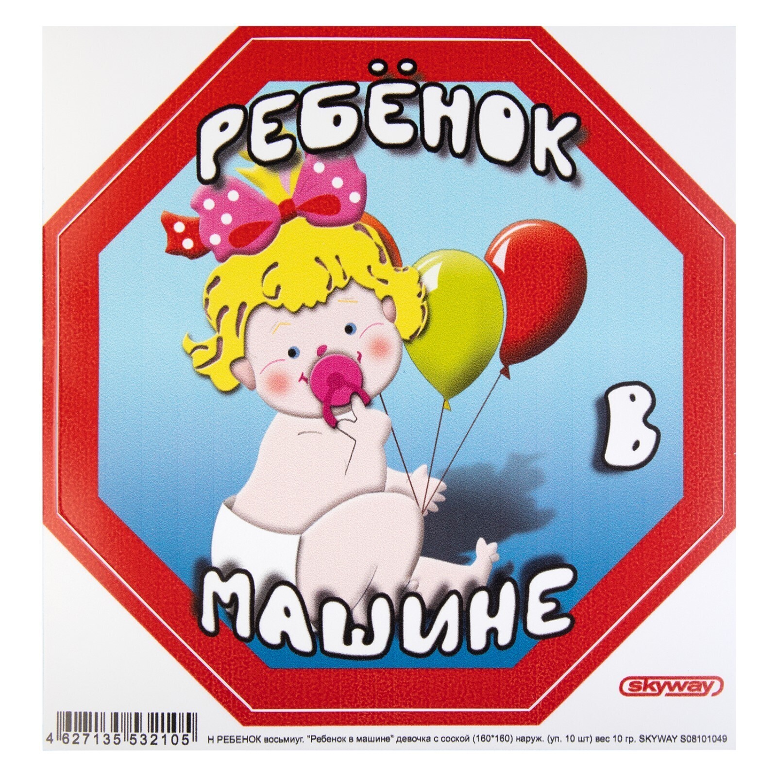 Наклейка на авто Skyway «Ребёнок в машине», девочка с соской, 160x160 мм