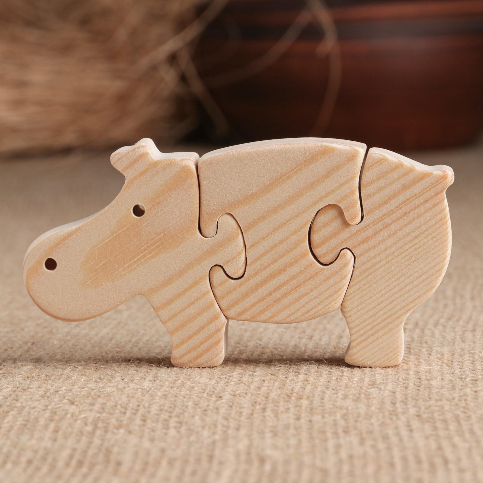 Заготовка для творчества мини пазл "Бегемот", дерево, 5,6х10,3 см