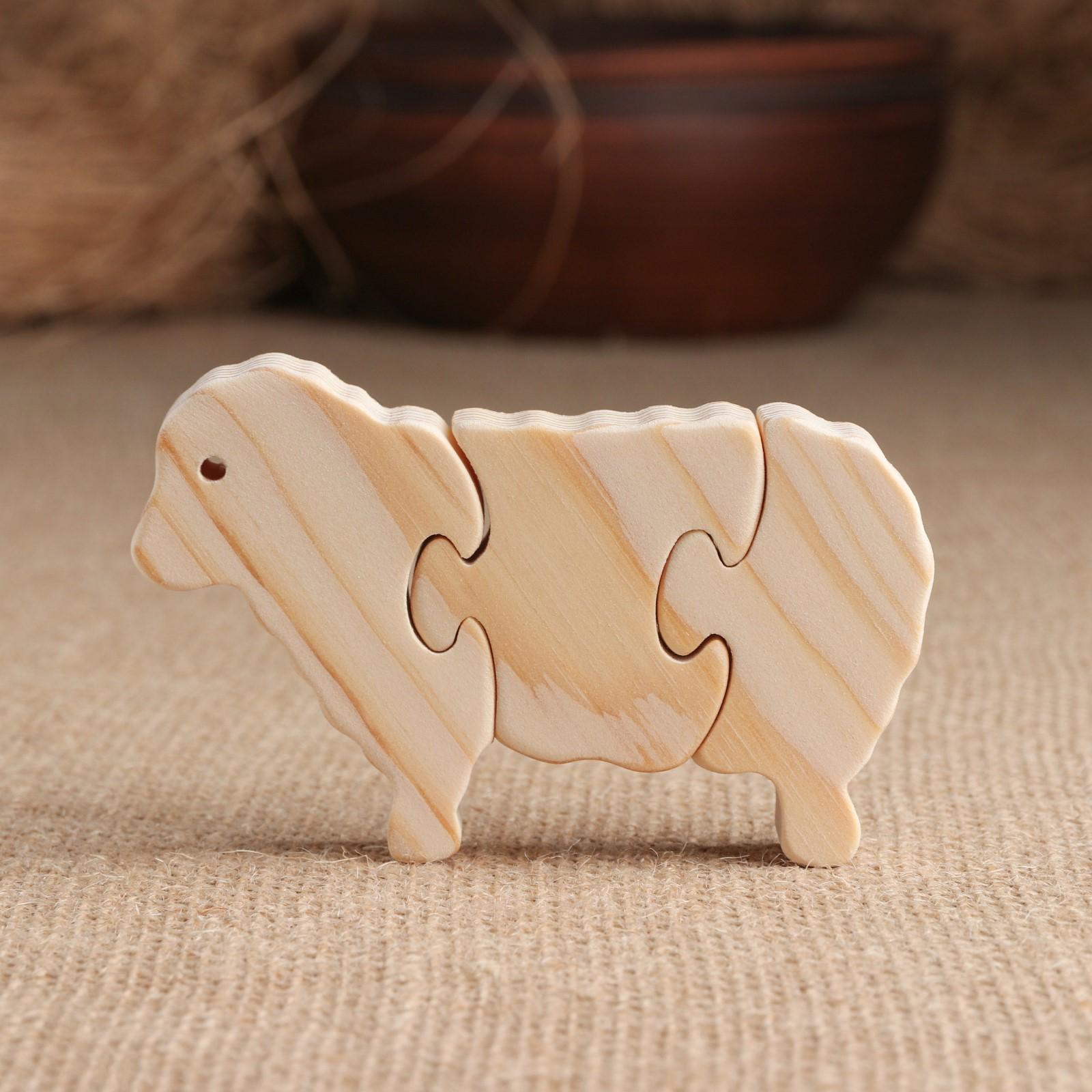 Заготовка для творчества мини пазл "Овечка", дерево, 6х9,5 см