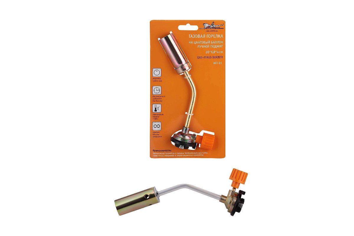 Горелка газовая AIRLINE AGT-01 на цанговый баллон, ручной поджиг, 20*6,8*4 см