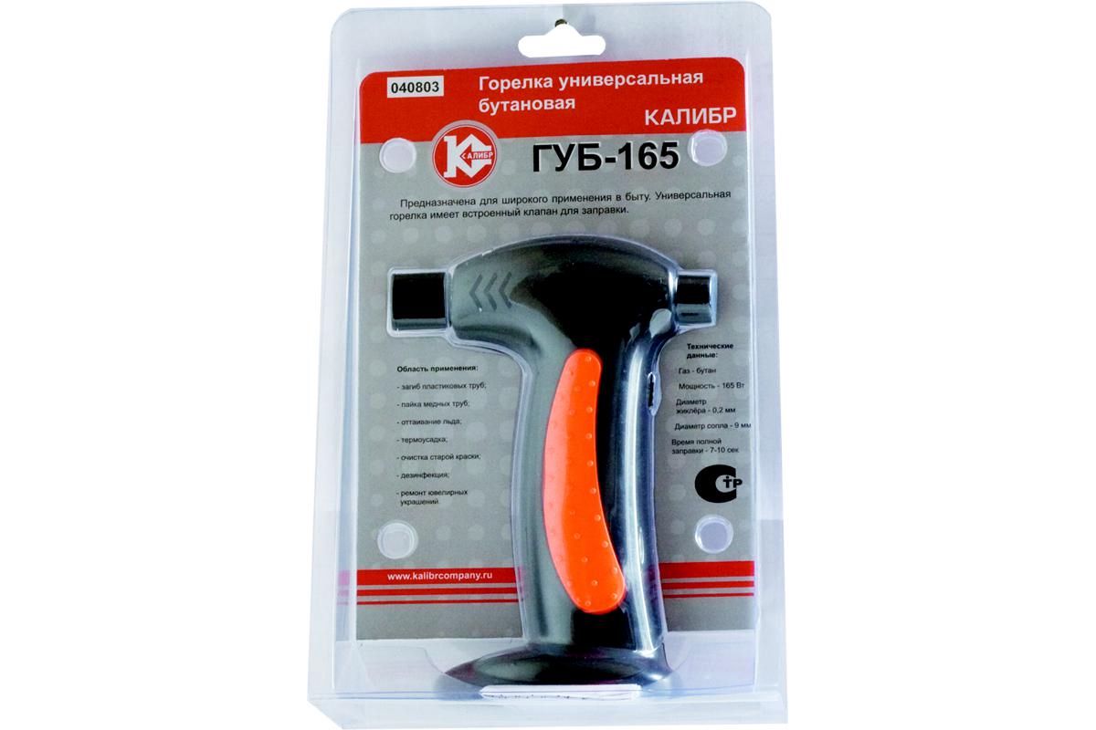 Горелка универсальная бутановая КАЛИБР ГУБ-165 165Вт встр.клапан д/заправки пьезоподжиг+насадки