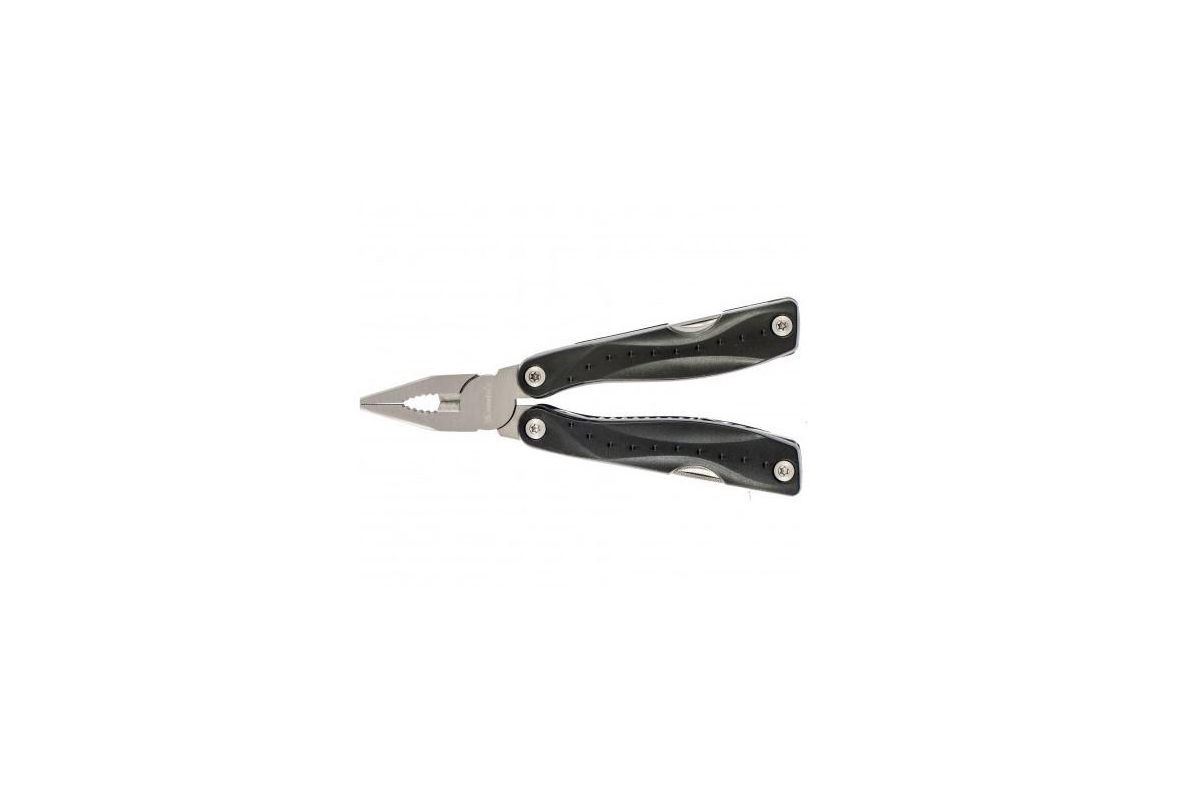 Трансформер Matrix 17621 — это мультитул длиной 160 мм с 13 функциями и авторазжимом, поставляется с чехлом. Его можно использовать в гараже — он включает длинногубцы с кусачками и захватом полукруглых предметов, а также отвертки. Инструмент пригодится в походе, на рыбалке или охоте, поскольку имеет в составе нож, пилу, открывалку и консервный нож. Благодаря пилке для ногтей мультитул будет полезен в быту.