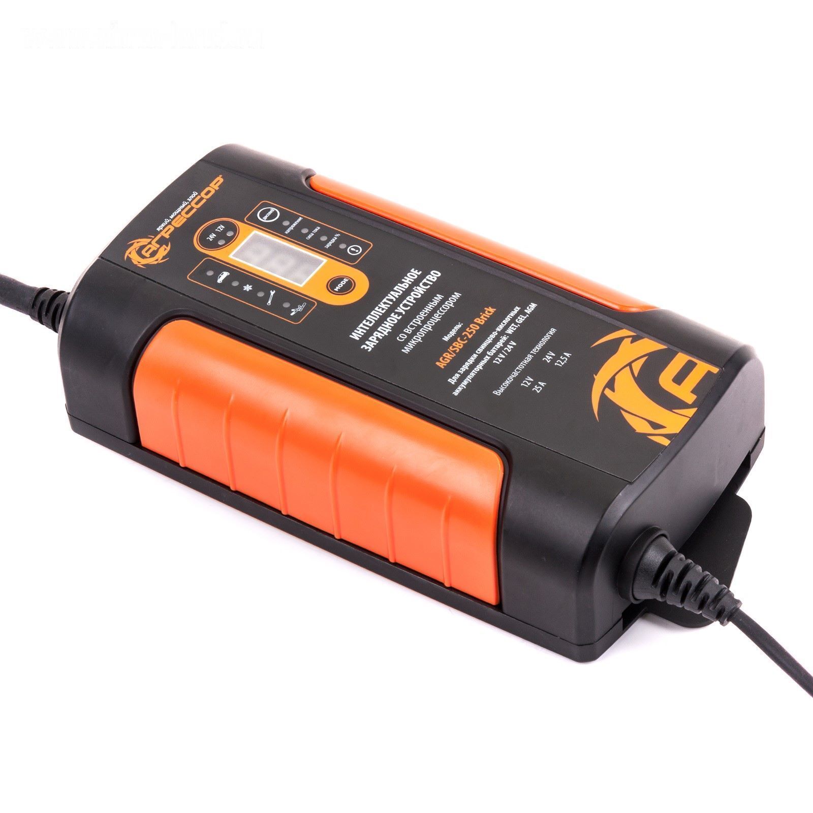 Цифровое зарядное устройство "Агрессор" AGR/SBC-250 Brick, 9 фаз зарядки, ток зарядки 12,5/25А, для 12V/24V АКБ (WET, AGM, GEL)