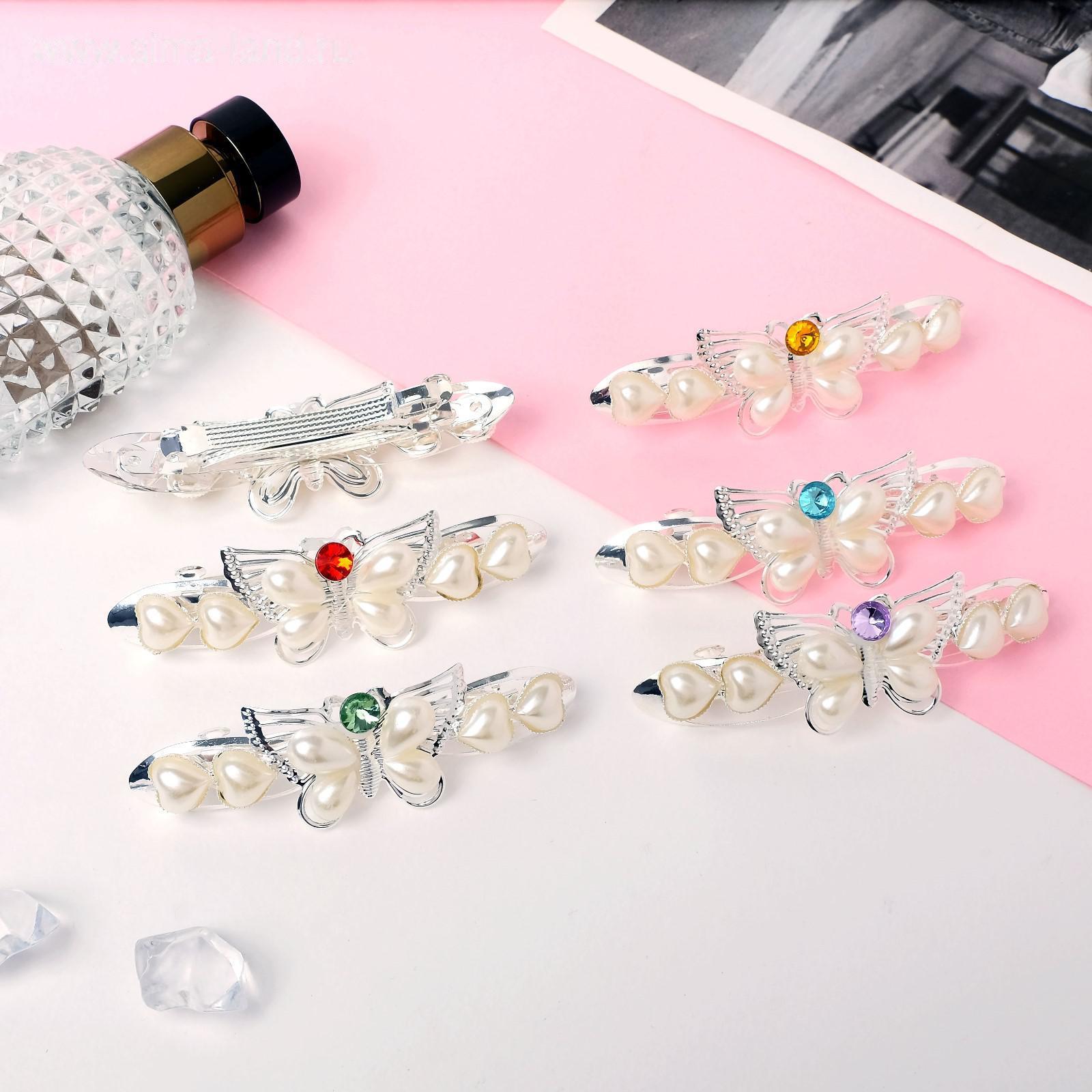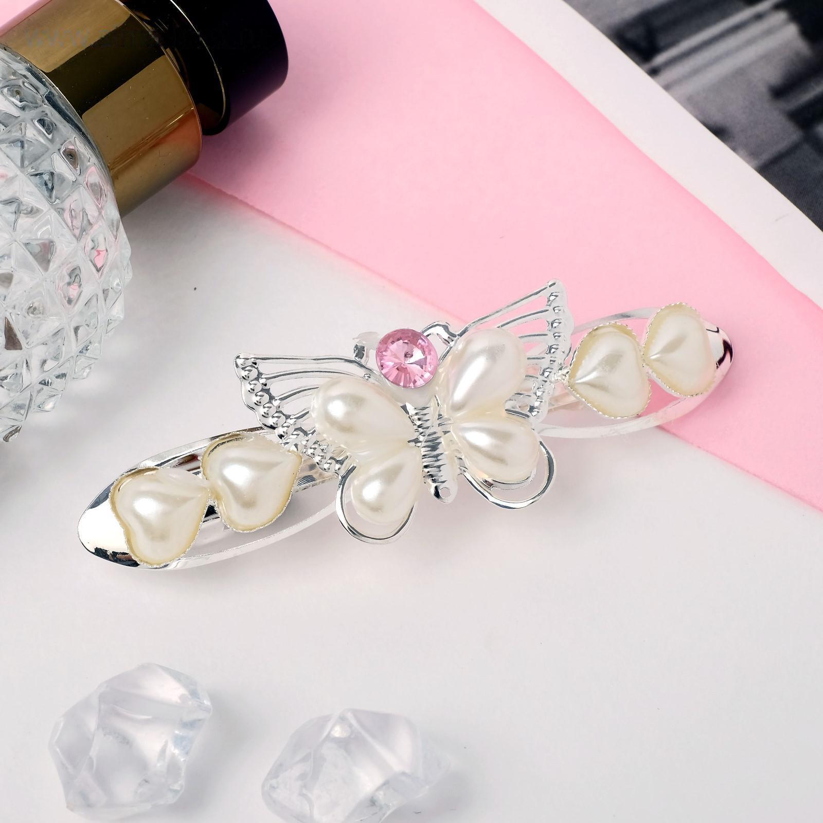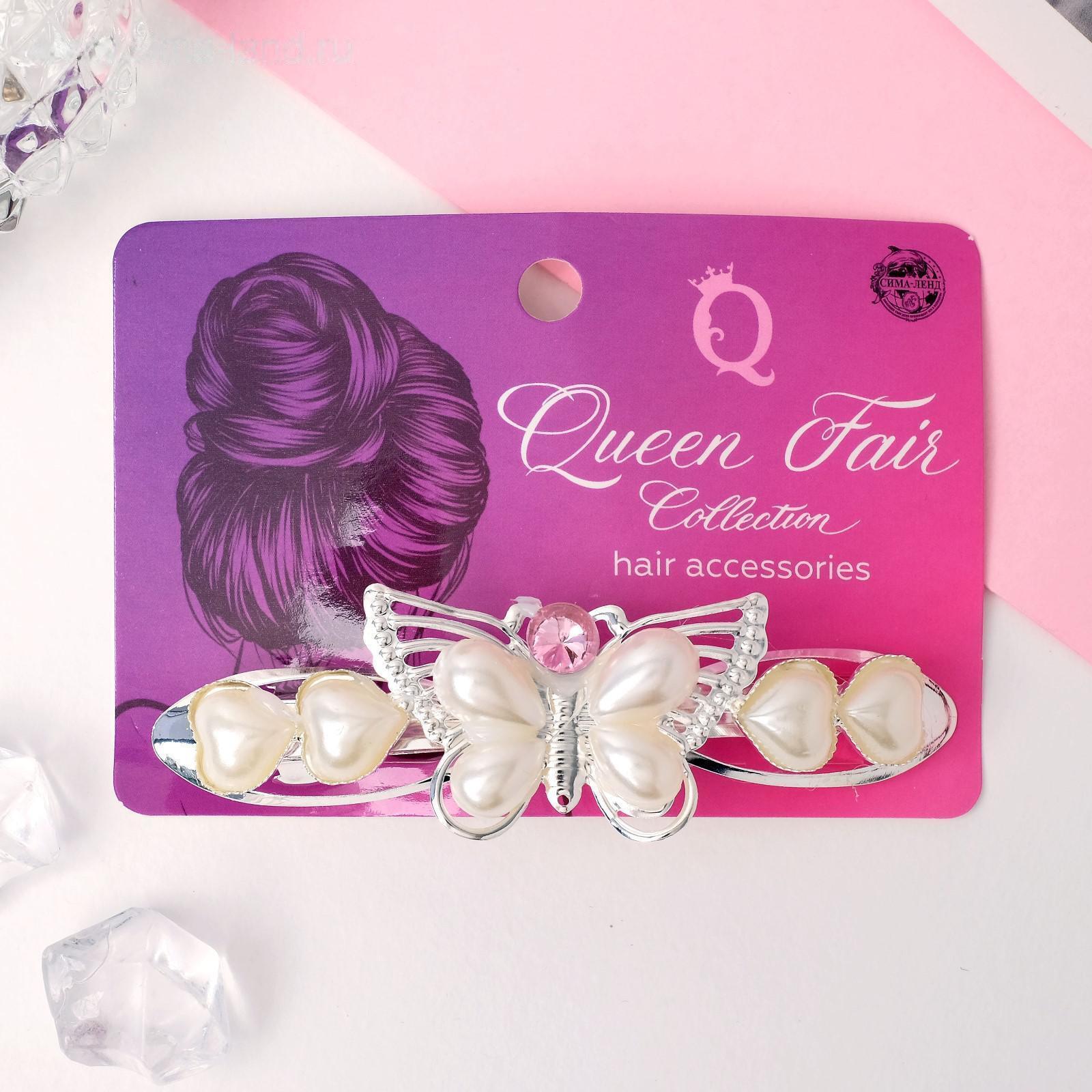Заколка-автомат для волос "Бабочка" сердечки белый, 9 см, микс