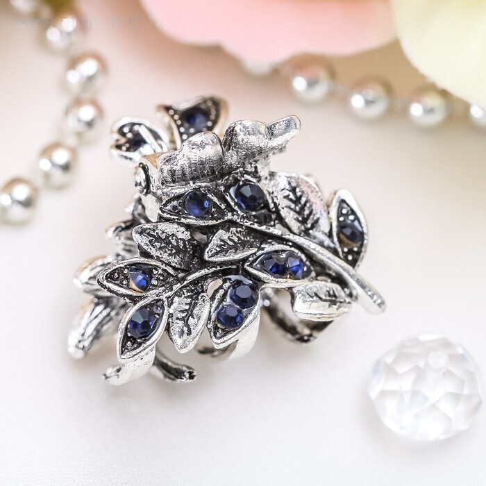 Краб для волос "Синий туман" веточка, 3 см, серебро