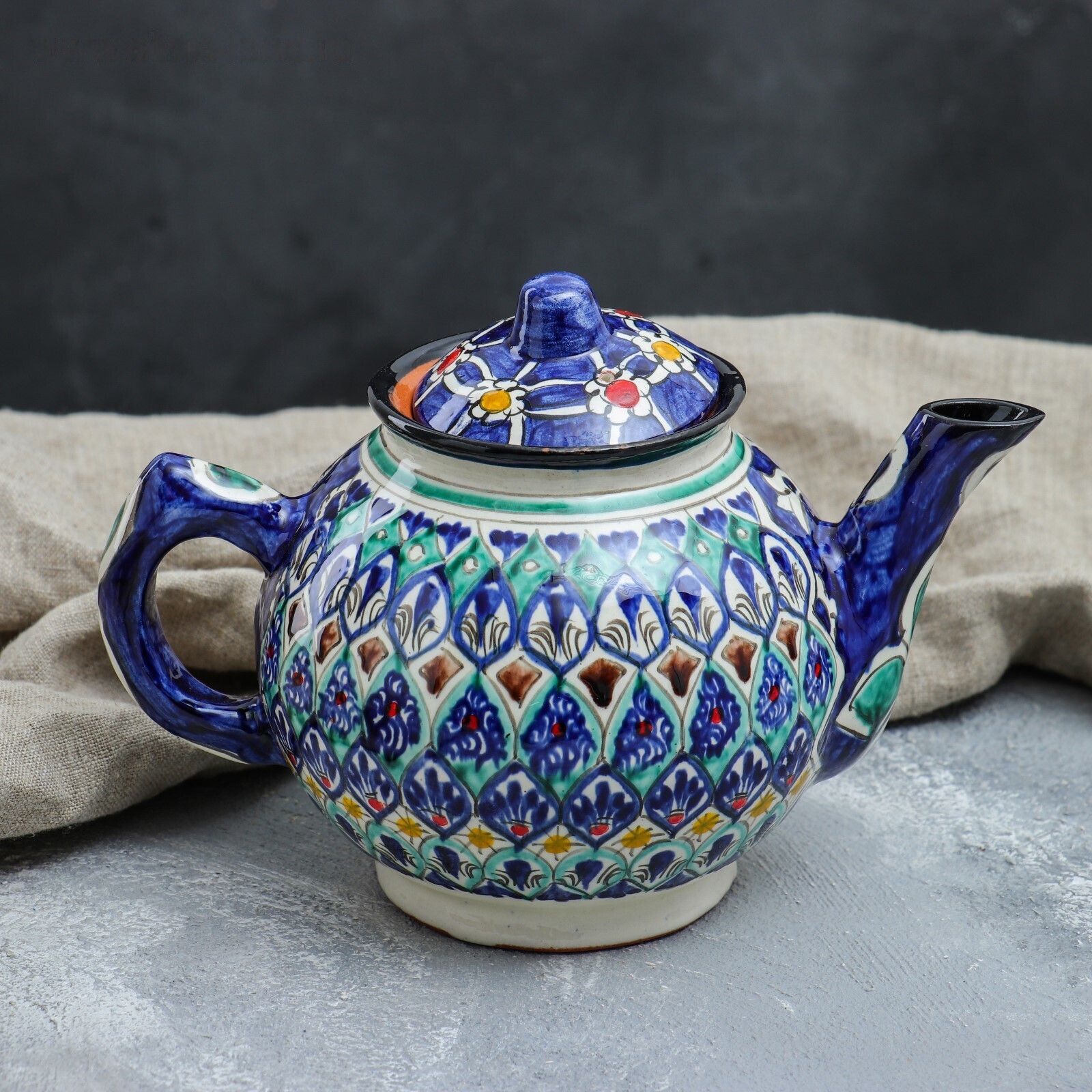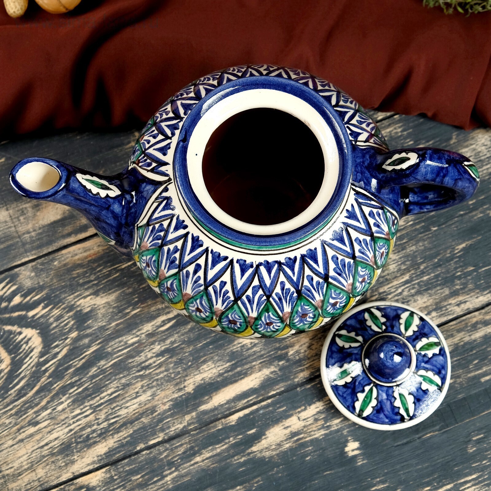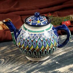 Чайник Риштанская Керамика "Узоры", 1000 мл, синий