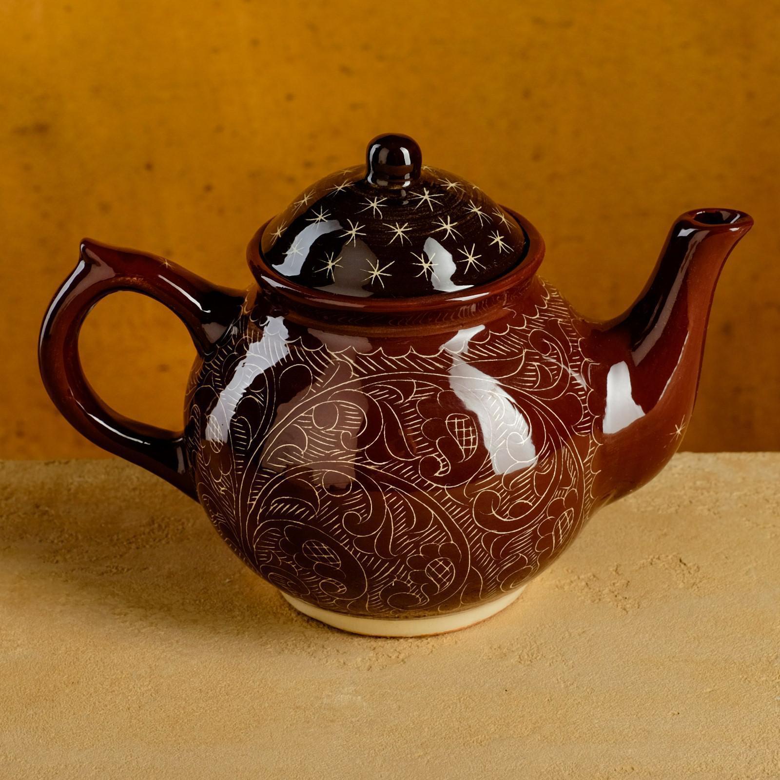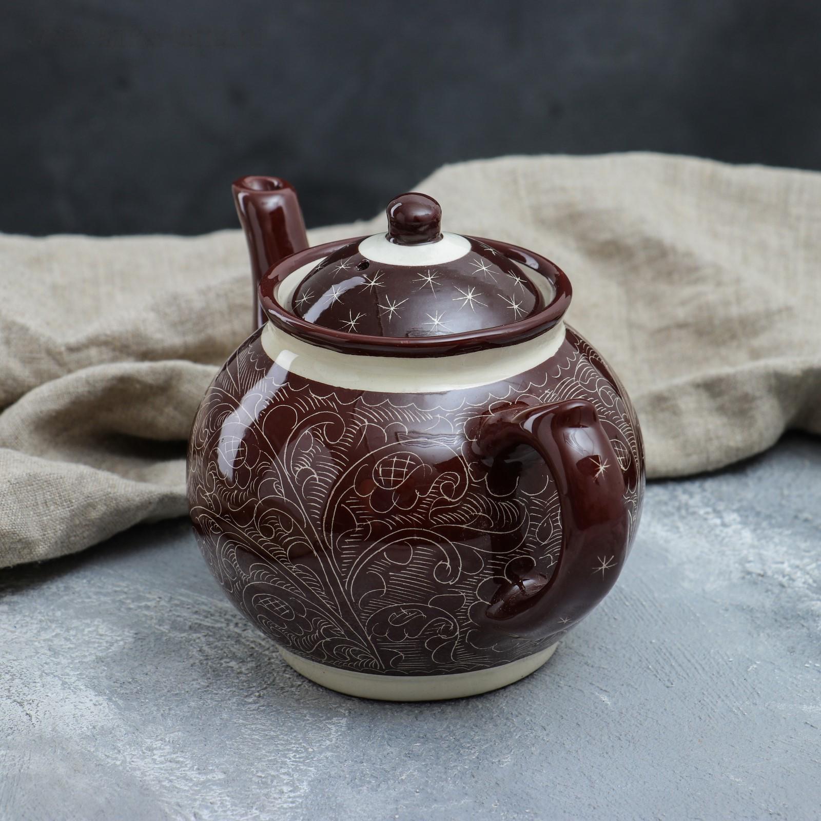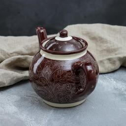 Чайник Риштанская Керамика "Узоры", 700 мл, коричневый
