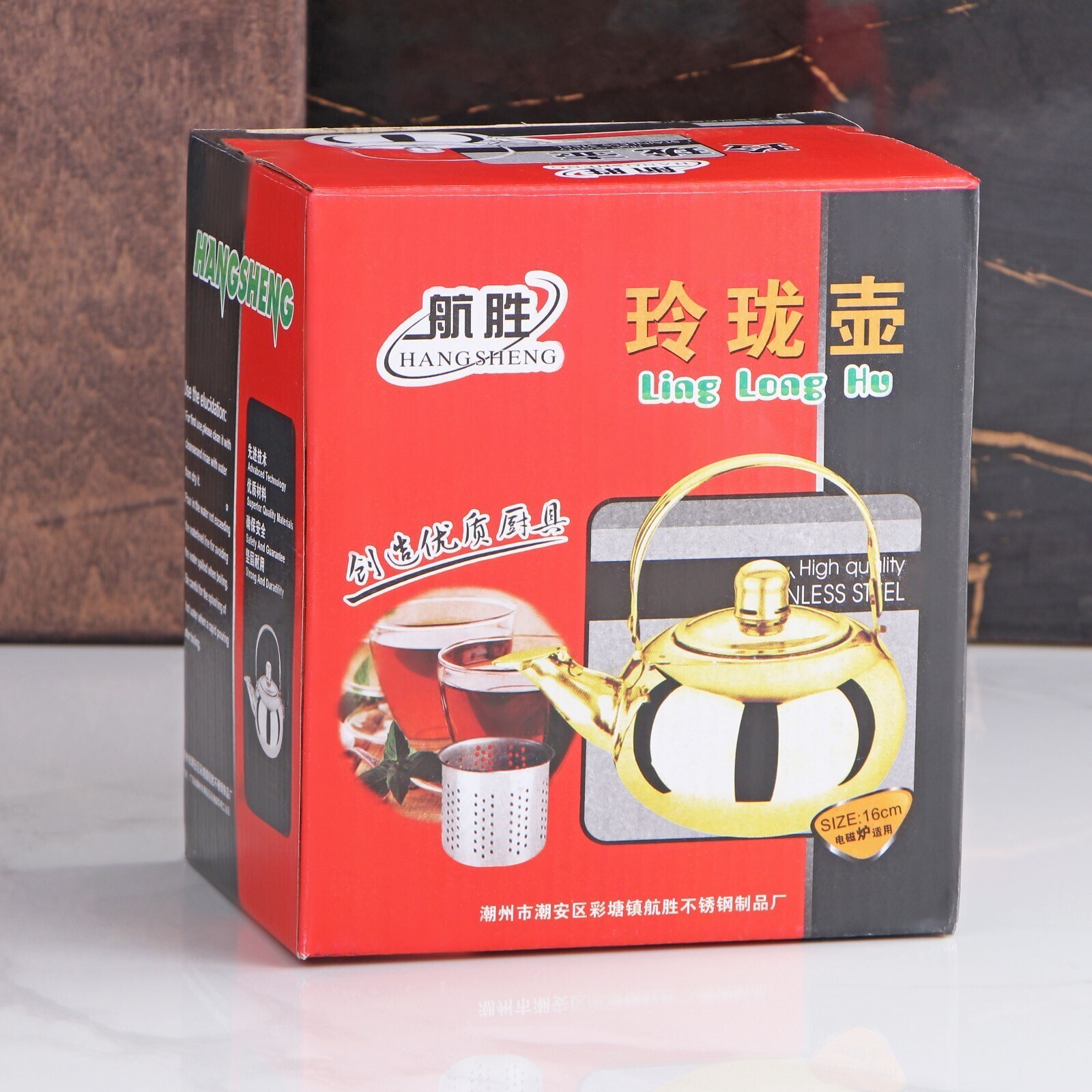 Заварочный чайник изготовлен из высококачественной нержавеющей стали, имеет металлическое сито.