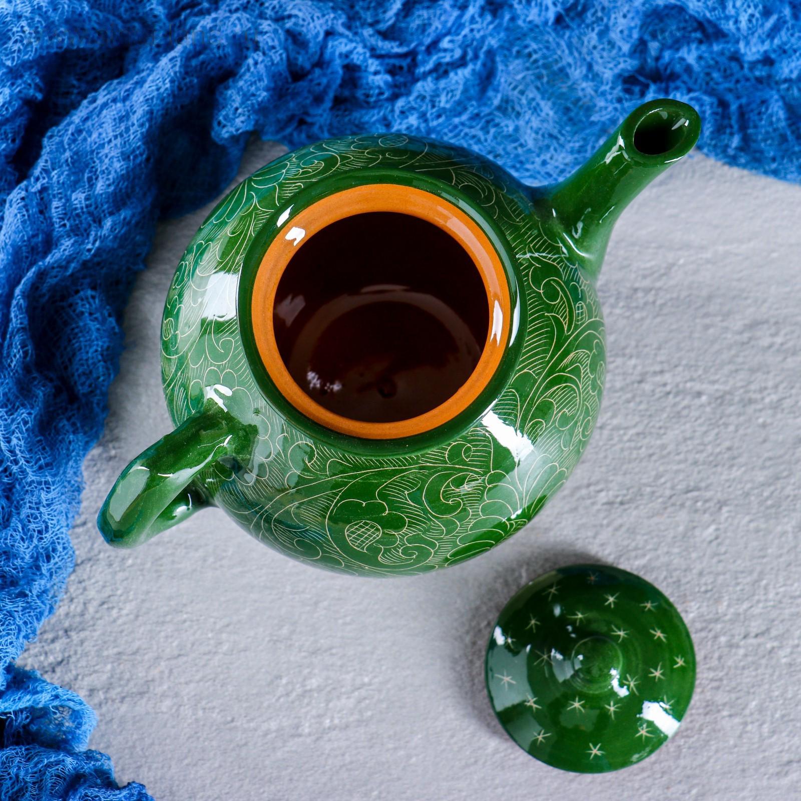 Чайник Риштанская Керамика "Узоры", 1000 мл, зелёный