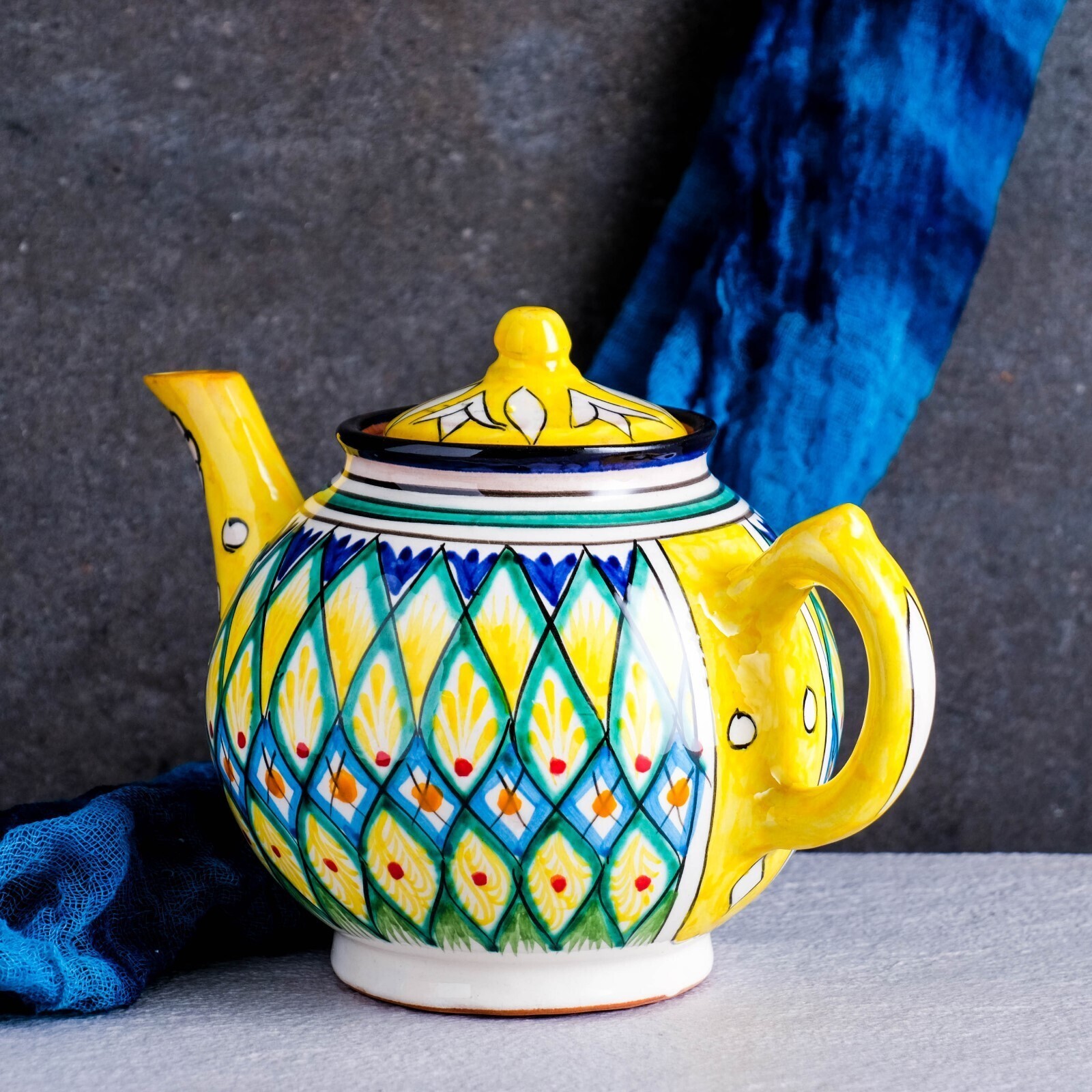 Чайник Риштанская Керамика "Узоры", 1000 мл, желтый