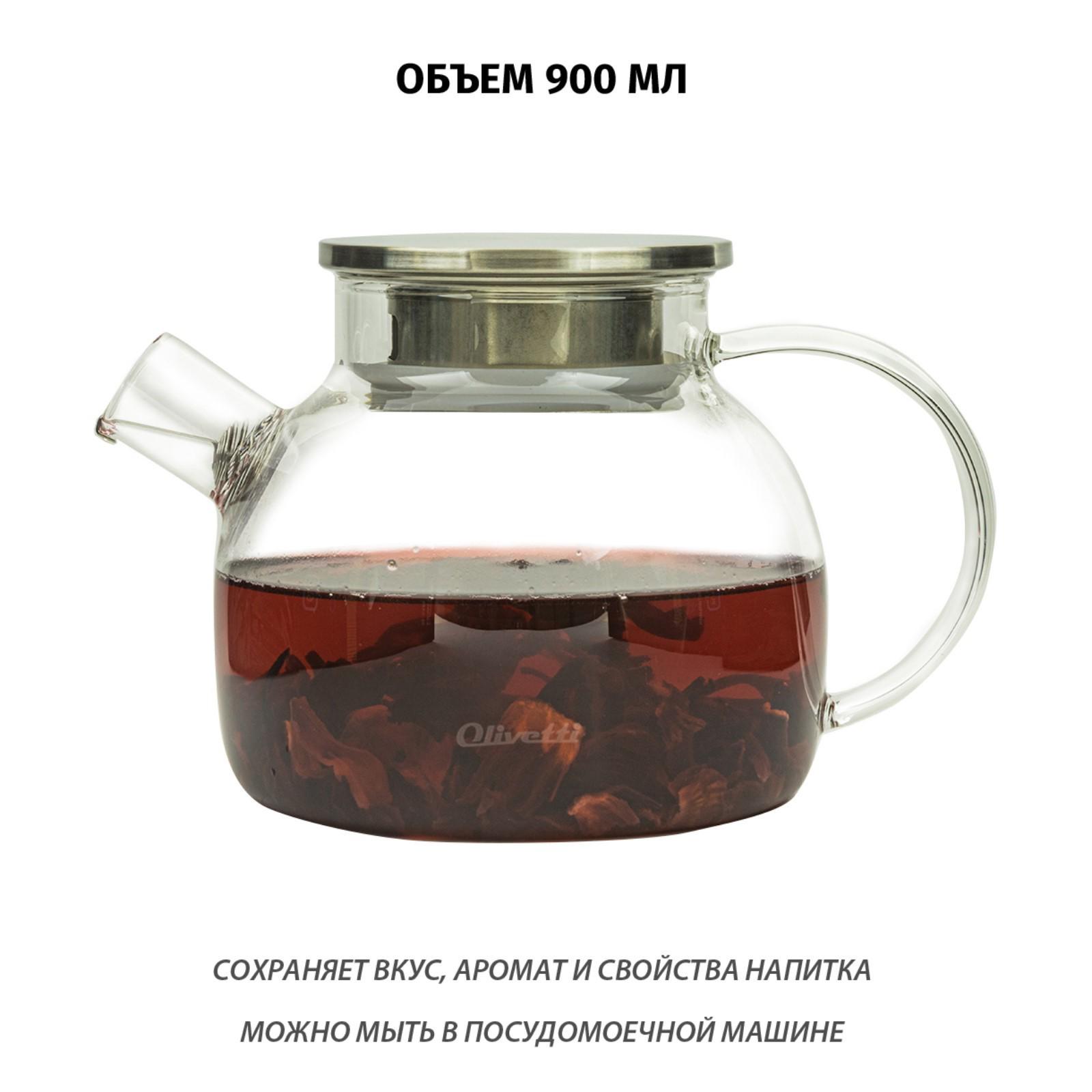 Заварочный чайник Olivetti GTK097, 900 мл, фильтр-пружинка, термостойкое стекло